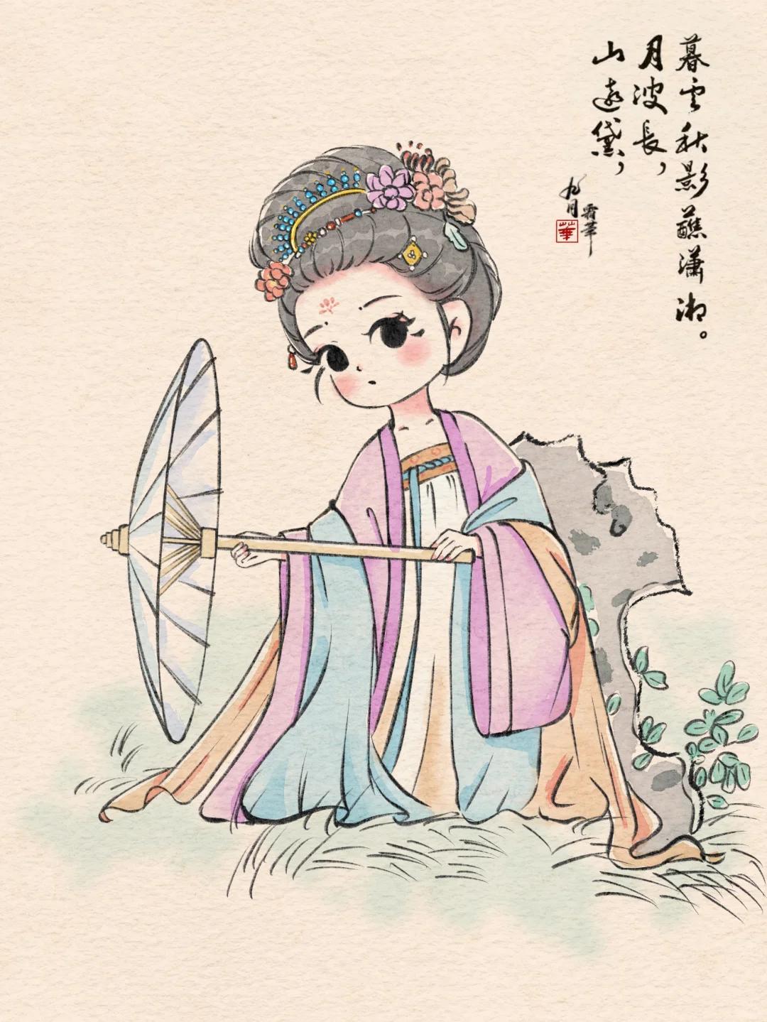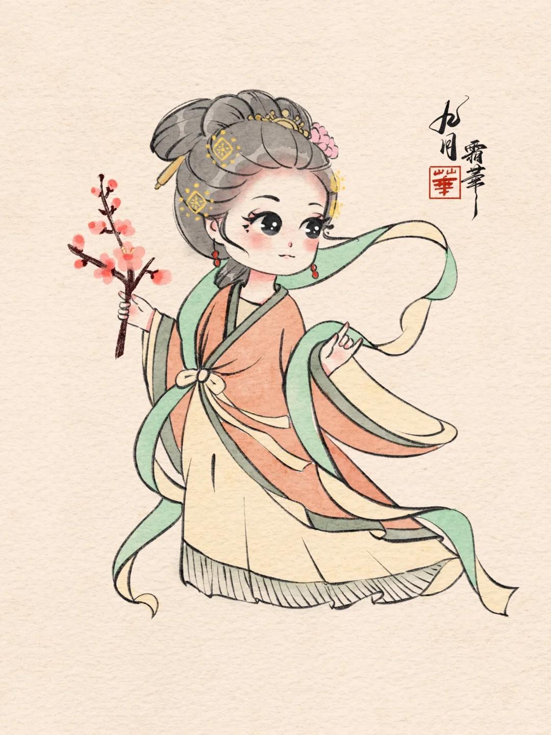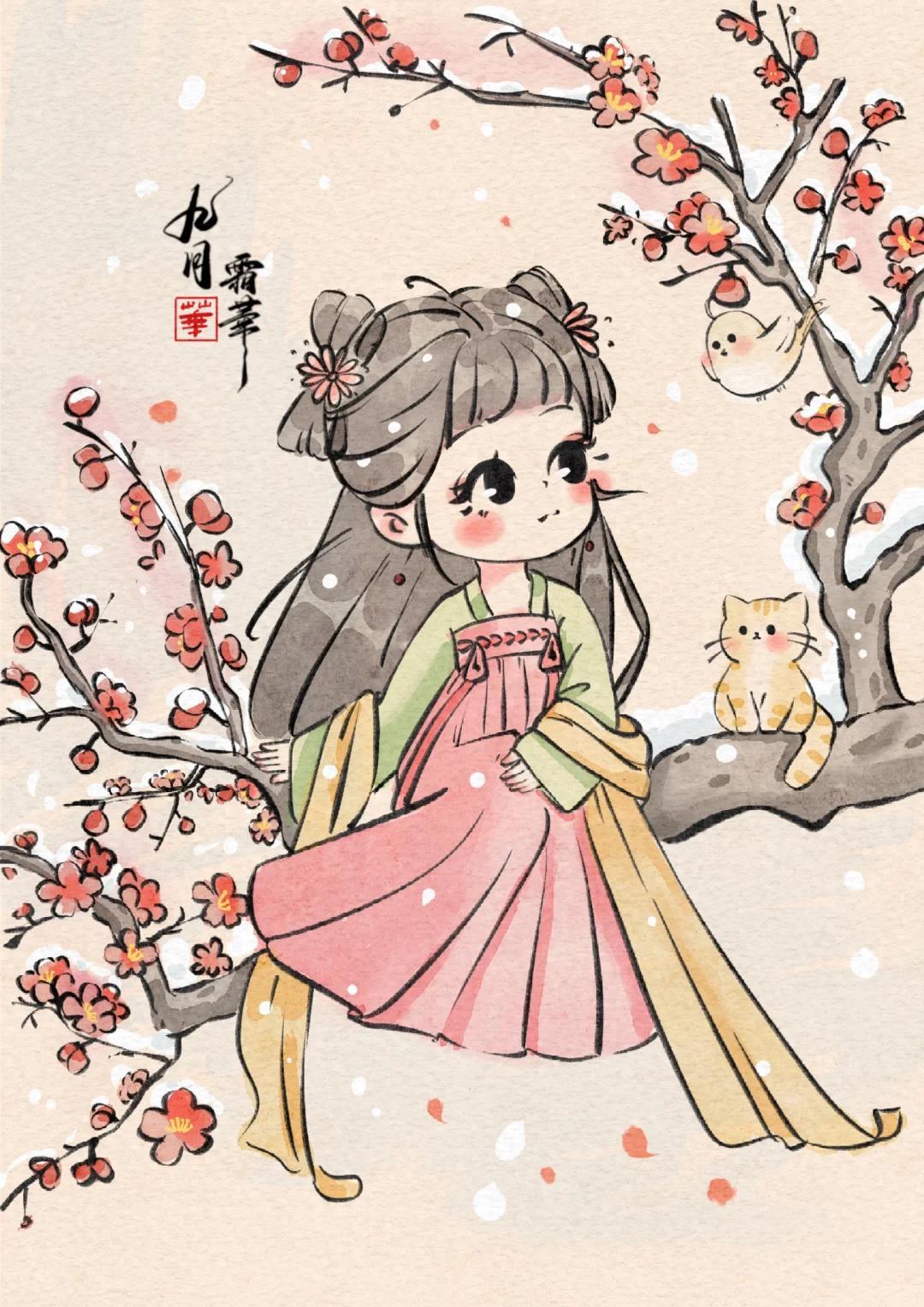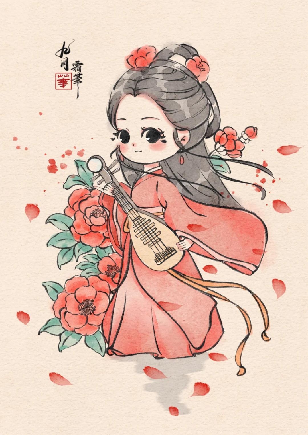 Q 版治癒系少女插畫:每一幅都像從古籍插畫裏蹦出的軟萌仙子