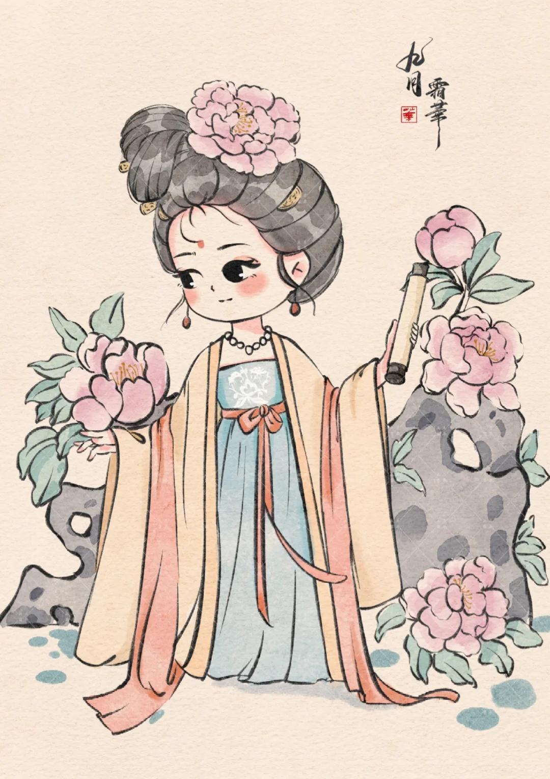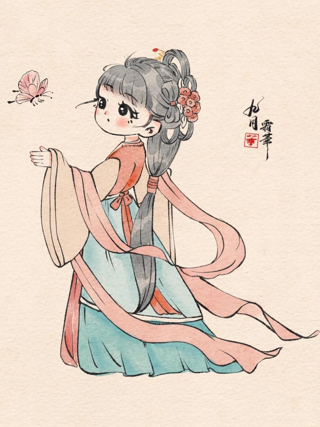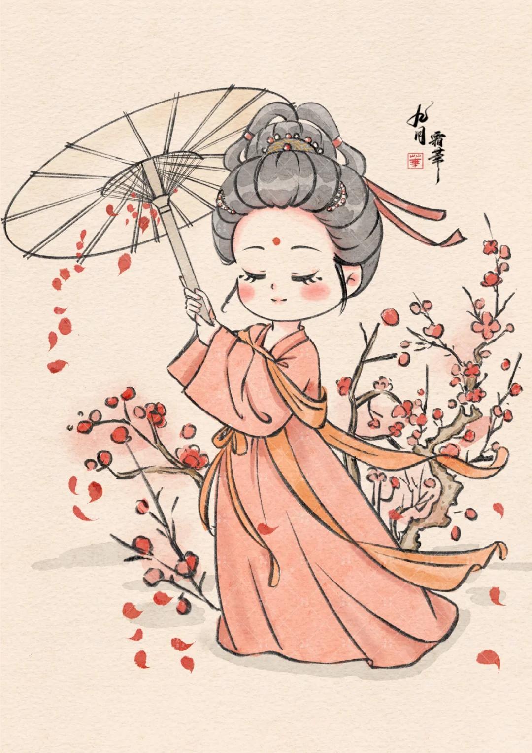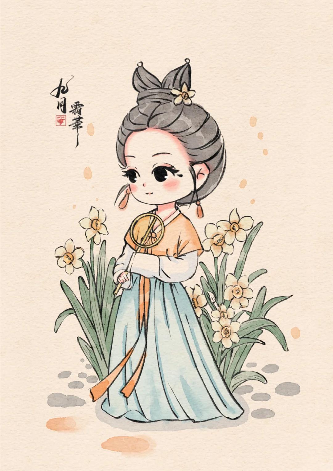 Q 版治癒系少女插畫:每一幅都像從古籍插畫裏蹦出的軟萌仙子