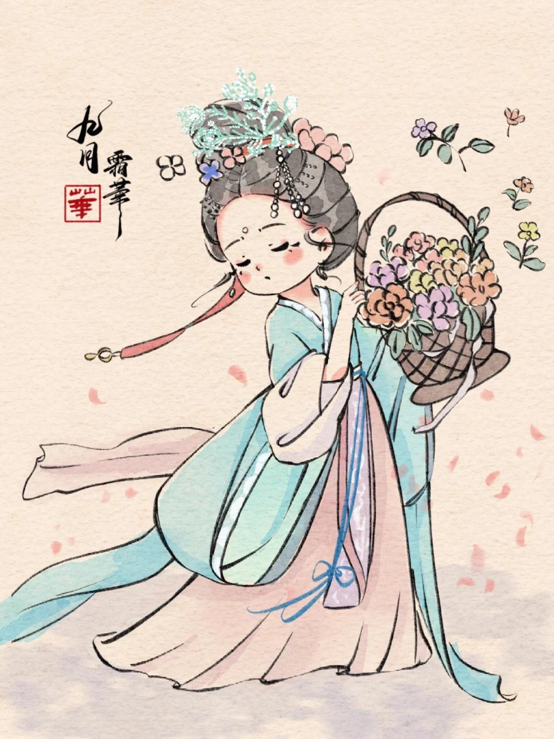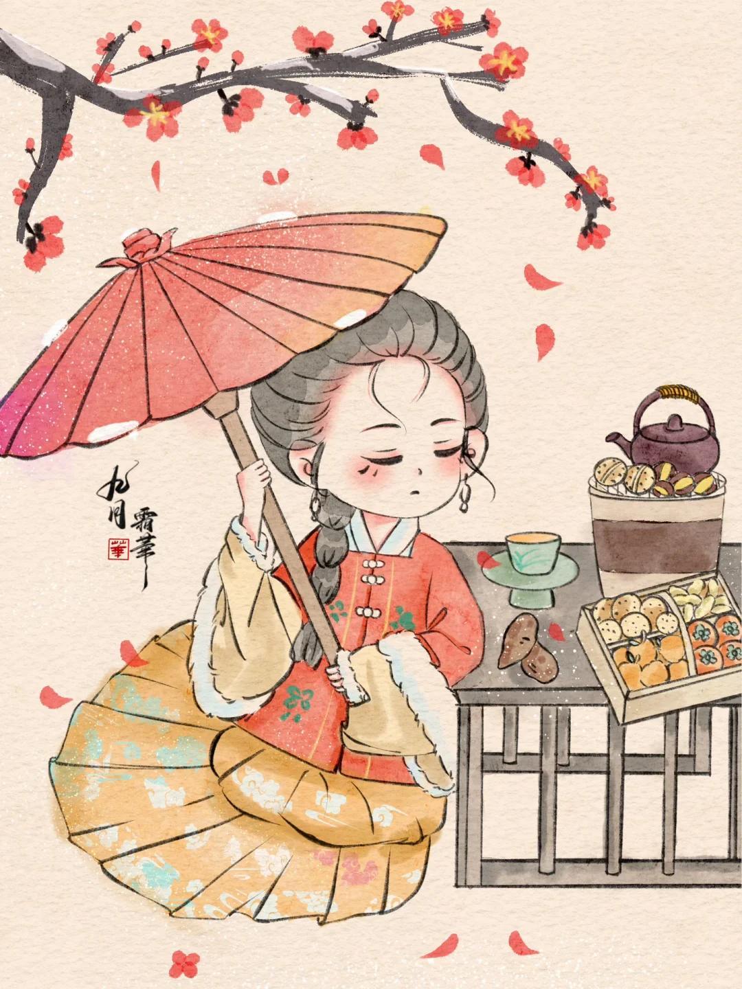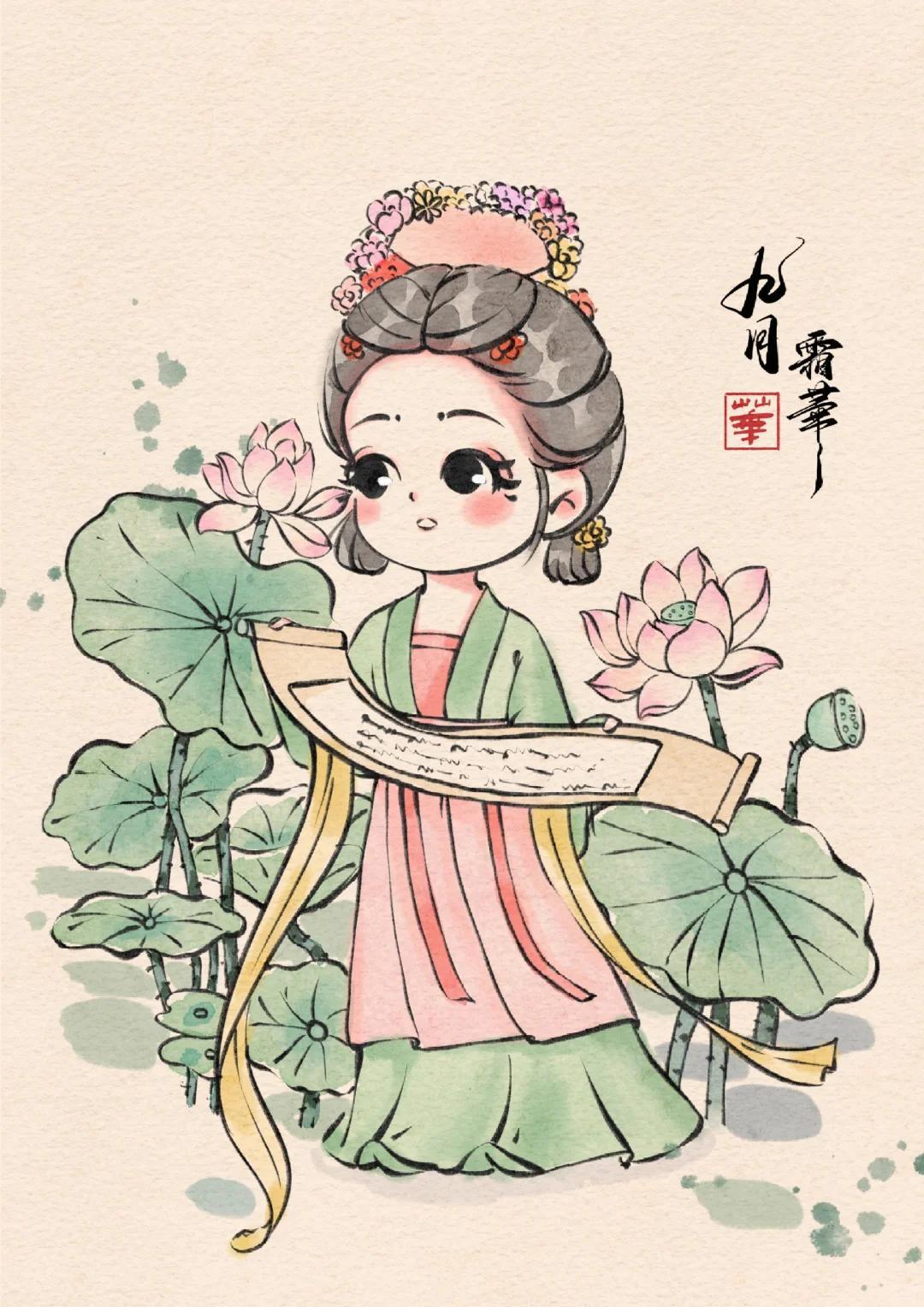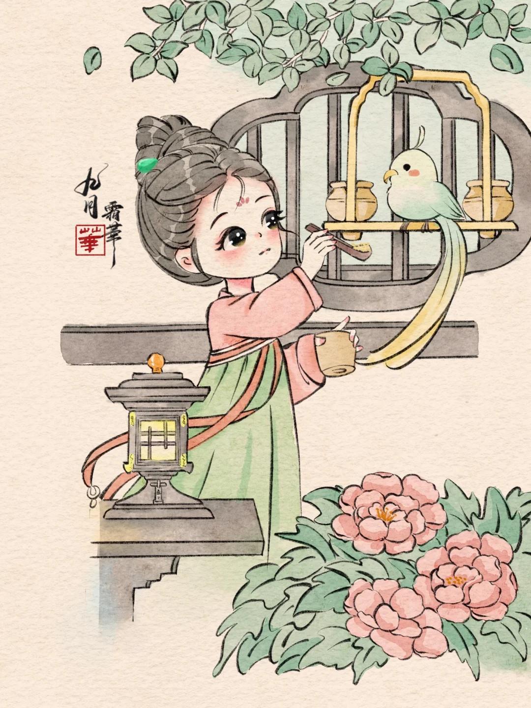 Q 版治癒系少女插畫:每一幅都像從古籍插畫裏蹦出的軟萌仙子