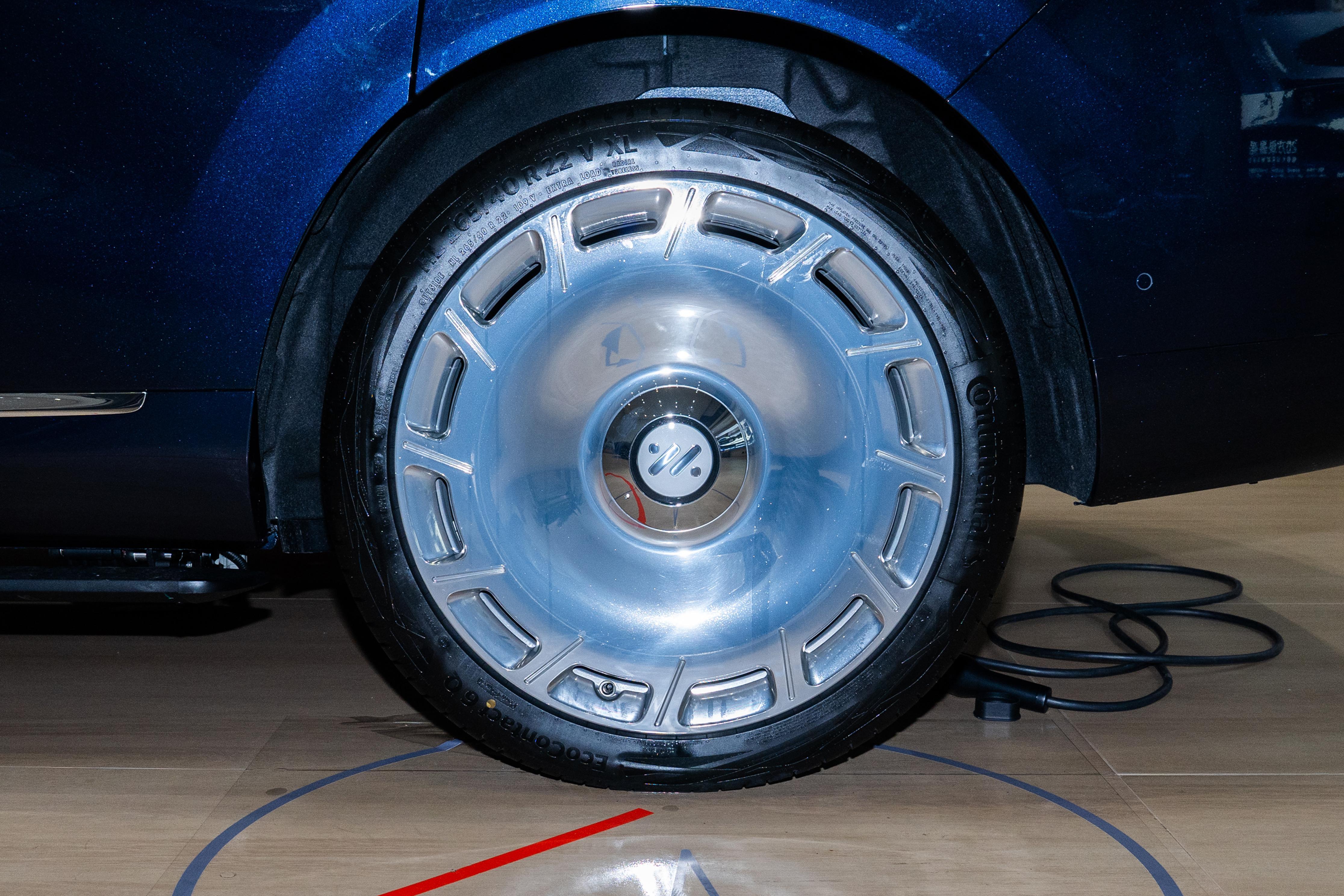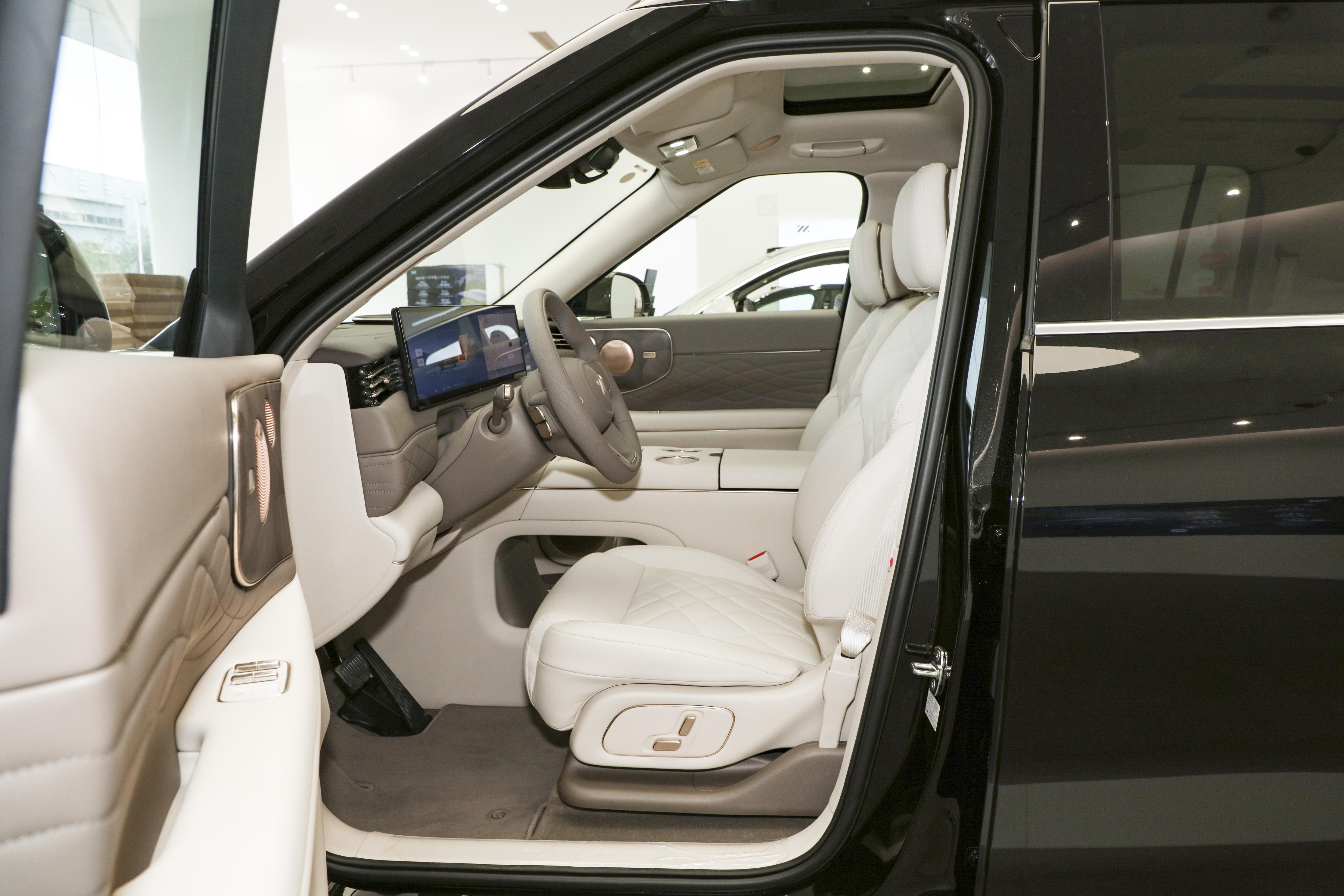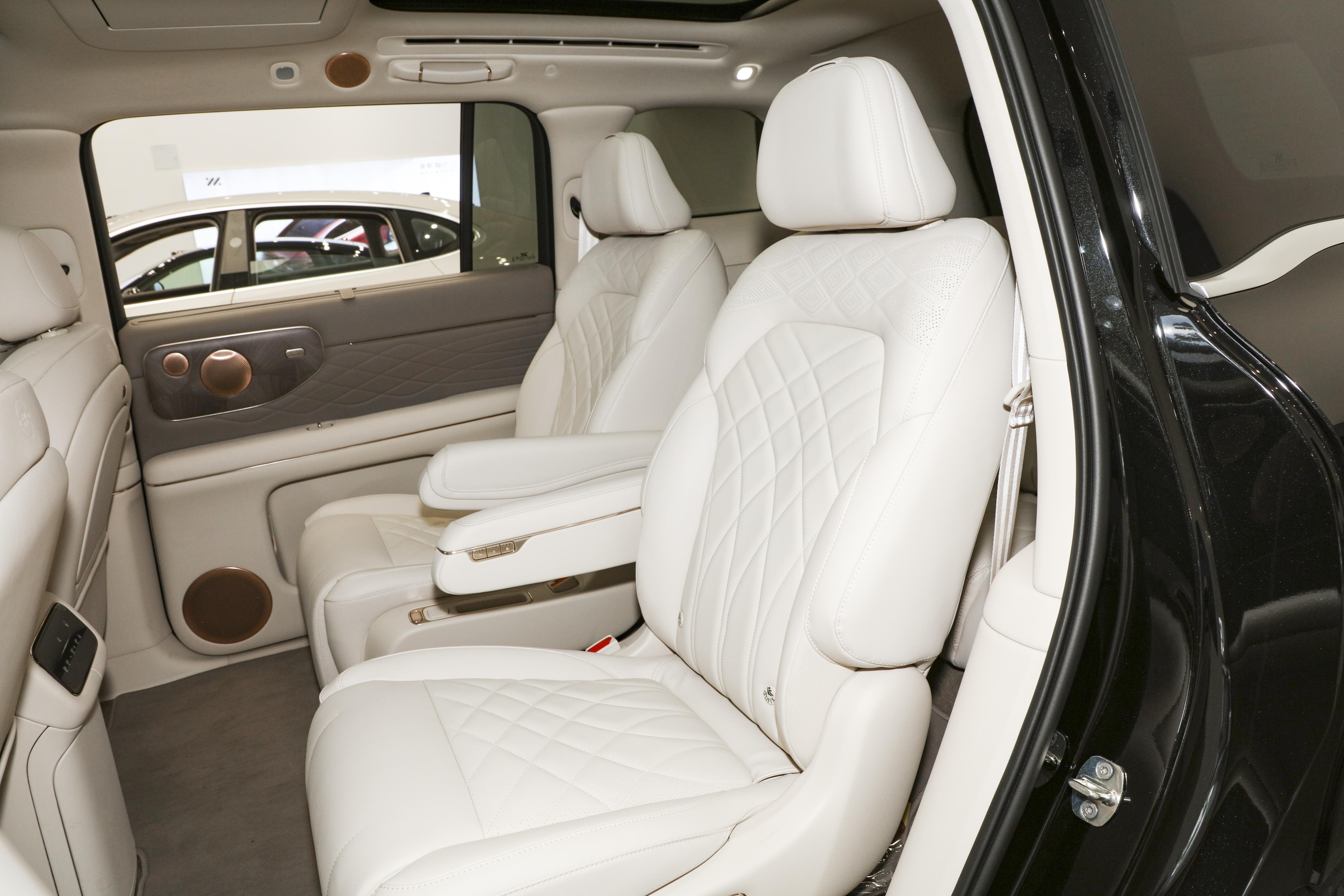 先來聊聊這款車的外觀設計,一看看見它時,那龐大的車身,氣勢磅礴,車身尺寸爲長5279mm,寬2000mm、高1806mm,軸距更是達到了3160mm,這樣大的體量,不僅看起來氣場十足,同時還提供了寬敞的座艙空間。別看塊頭大,這車卻看着一點也不笨,車身側面液態金屬般的觀影效果,在初冬暖陽下更顯得優雅亮眼。前臉部分,採用封閉式設計,線條簡潔有力。一體式貫穿燈帶橫跨整個車頭,點亮後辨識度極高,外觀配色方面,車身提供了“奧林匹斯黑” “喬戈裏銀”等四款高定顏色,金屬漆在光影的映照下呈現出漸變質感,盡顯高級。選裝的22寸星冕鏡面輪轂採用拋光工藝,精緻而不浮誇,不少用戶表示比傳統“土 豪風”設計更符合審美。車頂 的一體化 超 廣領域探射燈實用性很強,夜晚露營時能夠輕鬆覆蓋整個營地;前大燈的雨夜模式2.0藉助AI算法,有效提升了雨霧天氣下的路面清晰度。
