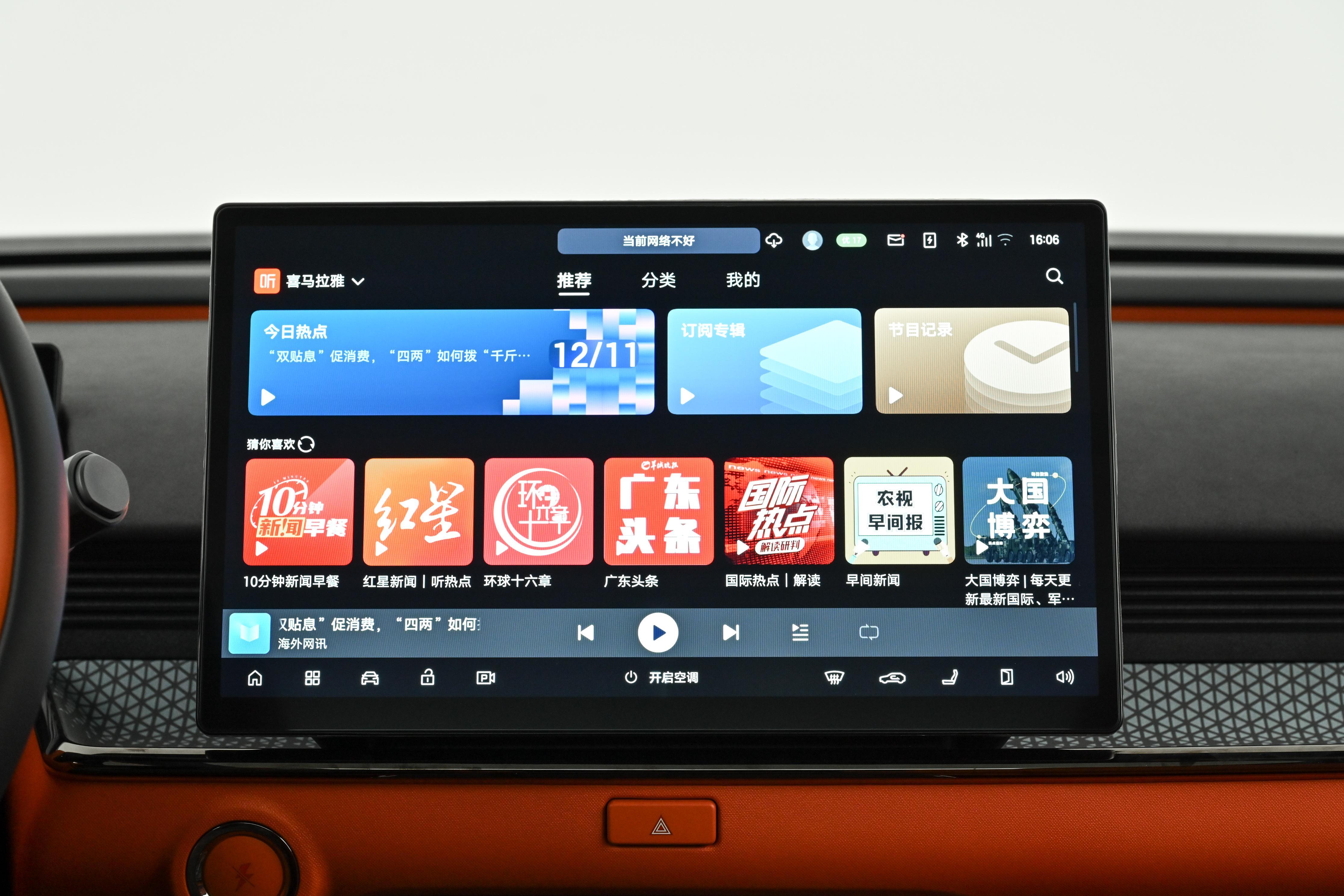 車內的“氛圍感”也很到位:搭載雅馬哈11喇叭音響系統,播放音樂時音質細膩,孩子坐在後排聽兒歌、老人聽戲曲都很享受;32色氛圍燈可以根據心情調節,晚上開車時打開暖黃色燈光,整個車內瞬間變得溫馨起來;空調採用熱泵空調,冬天制熱效率高還省電,比傳統電阻加熱更節能,簡接減少了冬季續航衰減。
