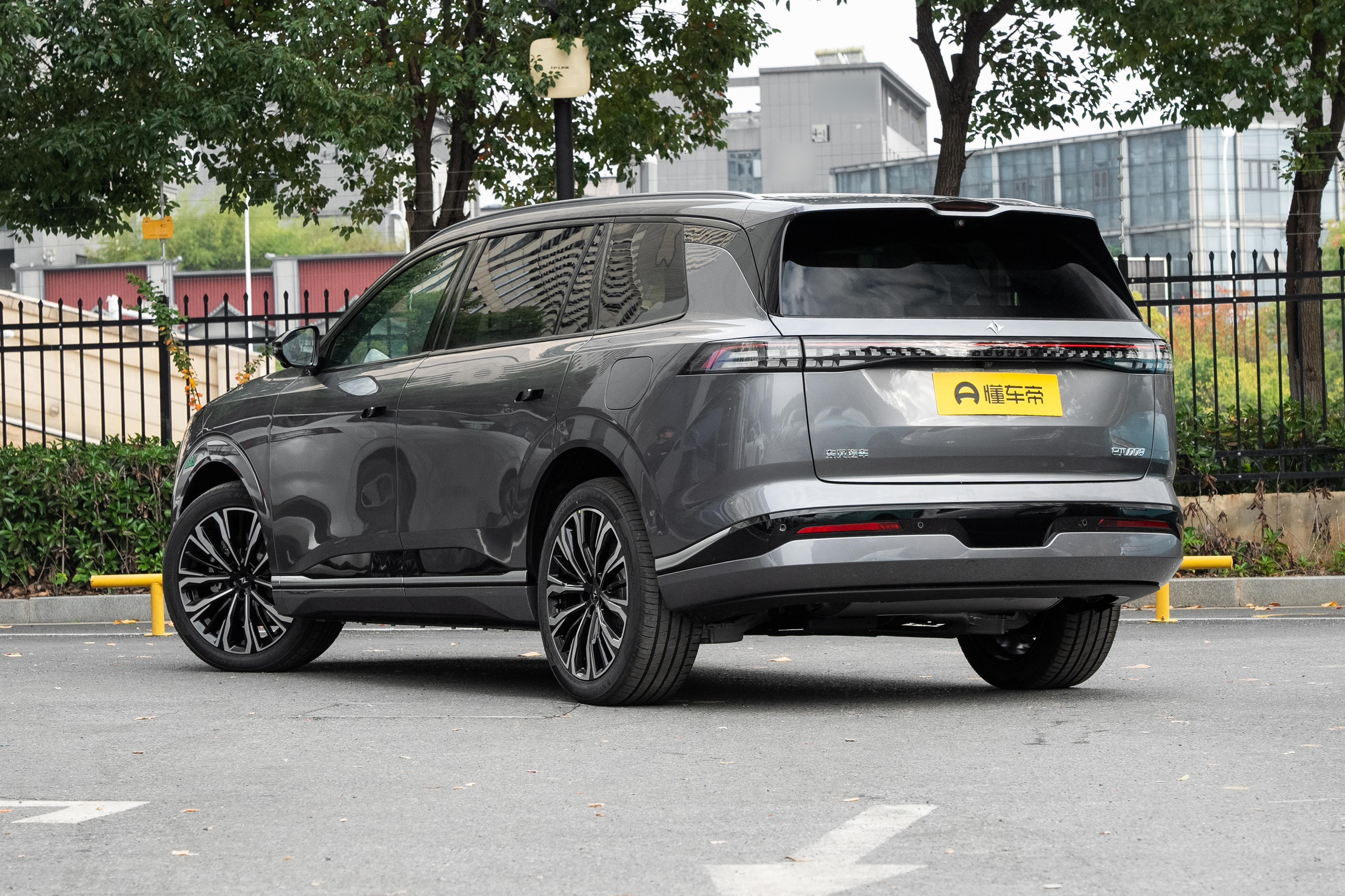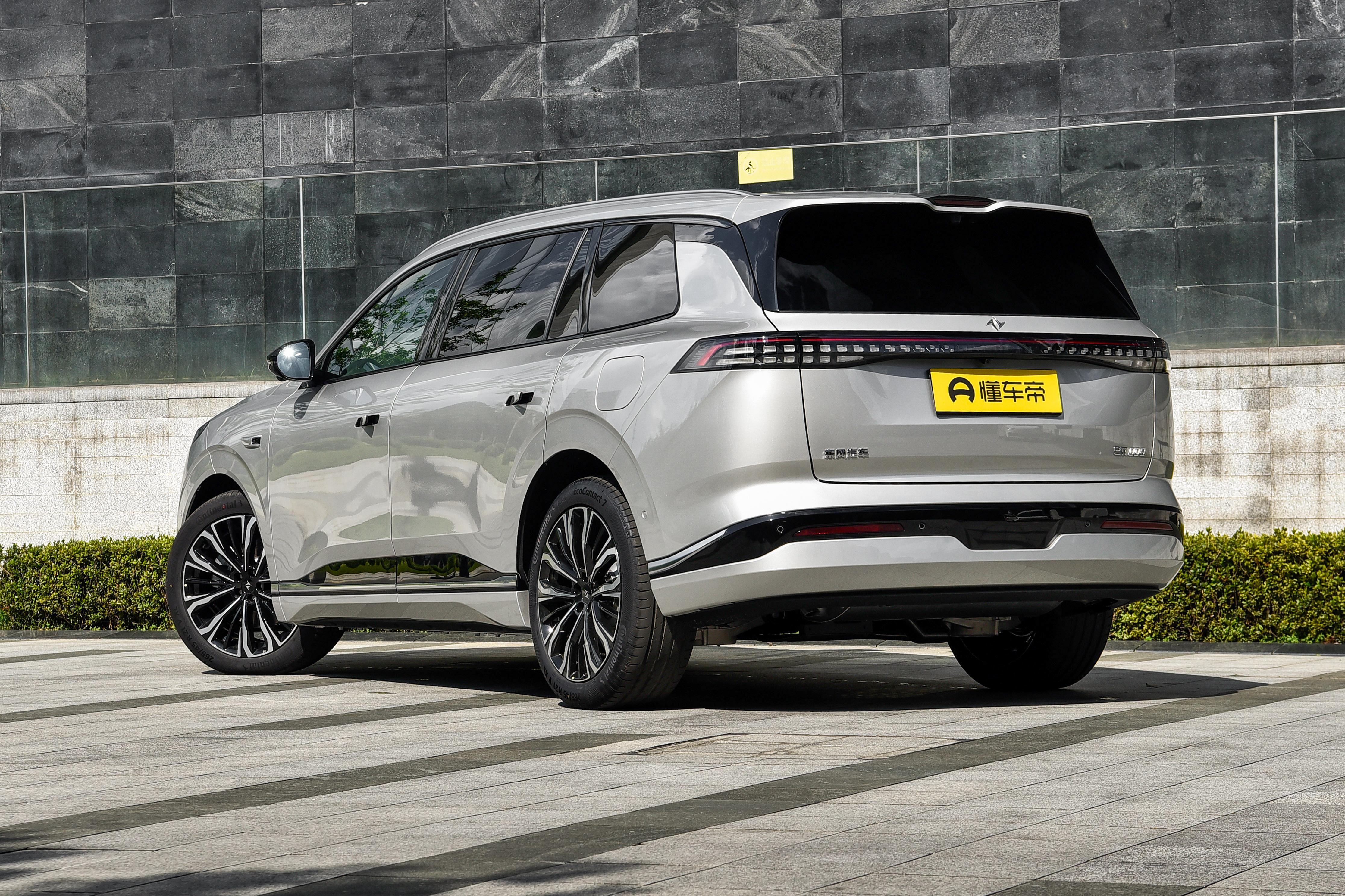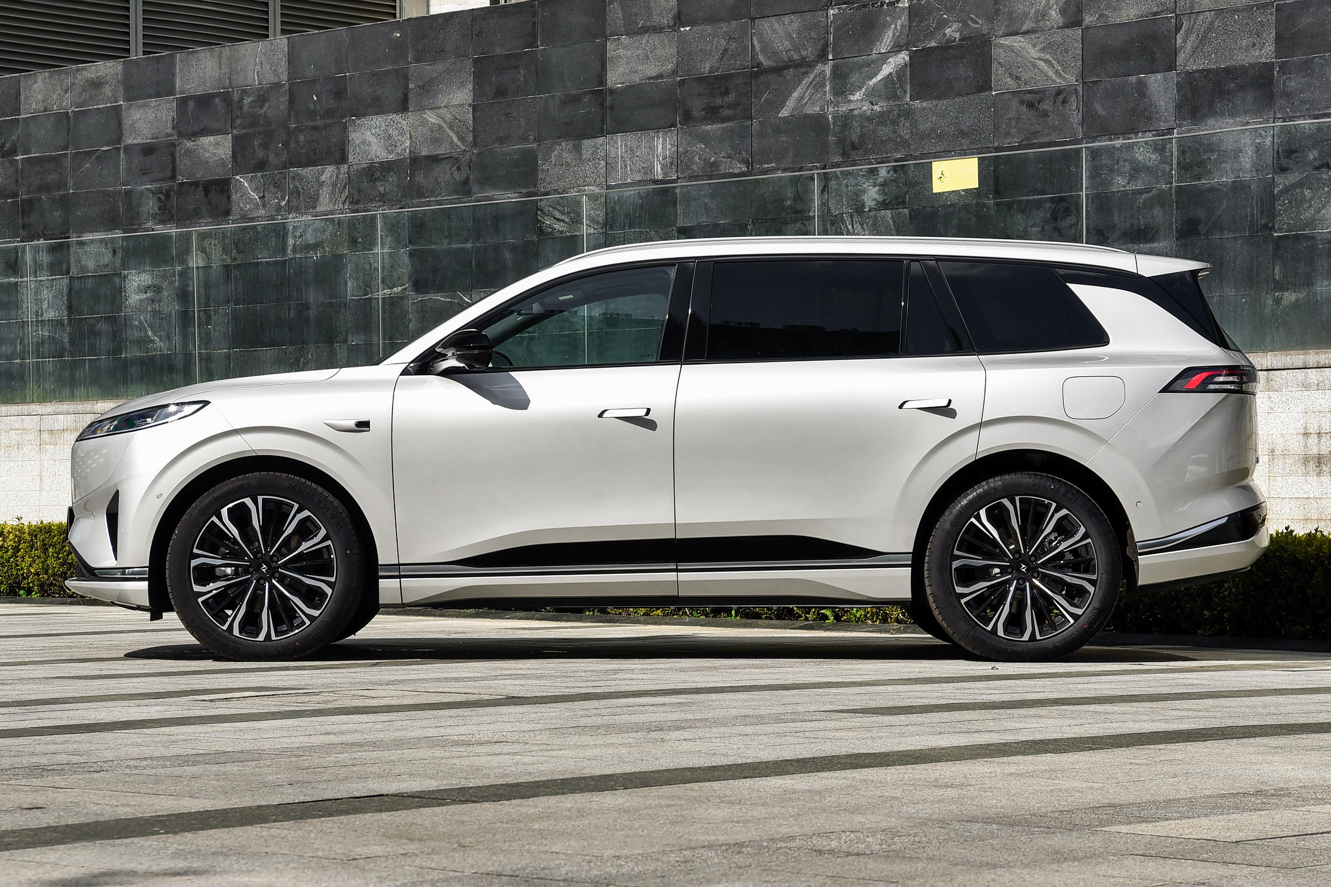 車身線條修長,上揚的貫穿式腰線增添動感,避免了傳統SUV 的笨重感。標配21英寸高強度鋁合金輪轂,視覺上更穩重。懸浮式車頂和隱藏式門把手進一步增加了年輕氣息,整體風格兼顧家用實用性與商務場景需求。車尾與車頭設計呼應,寬厚勻稱的造型搭配貫穿式尾燈,夜間點亮形成“光帶”效果,提上雨霧天及高速行駛的安全性。
