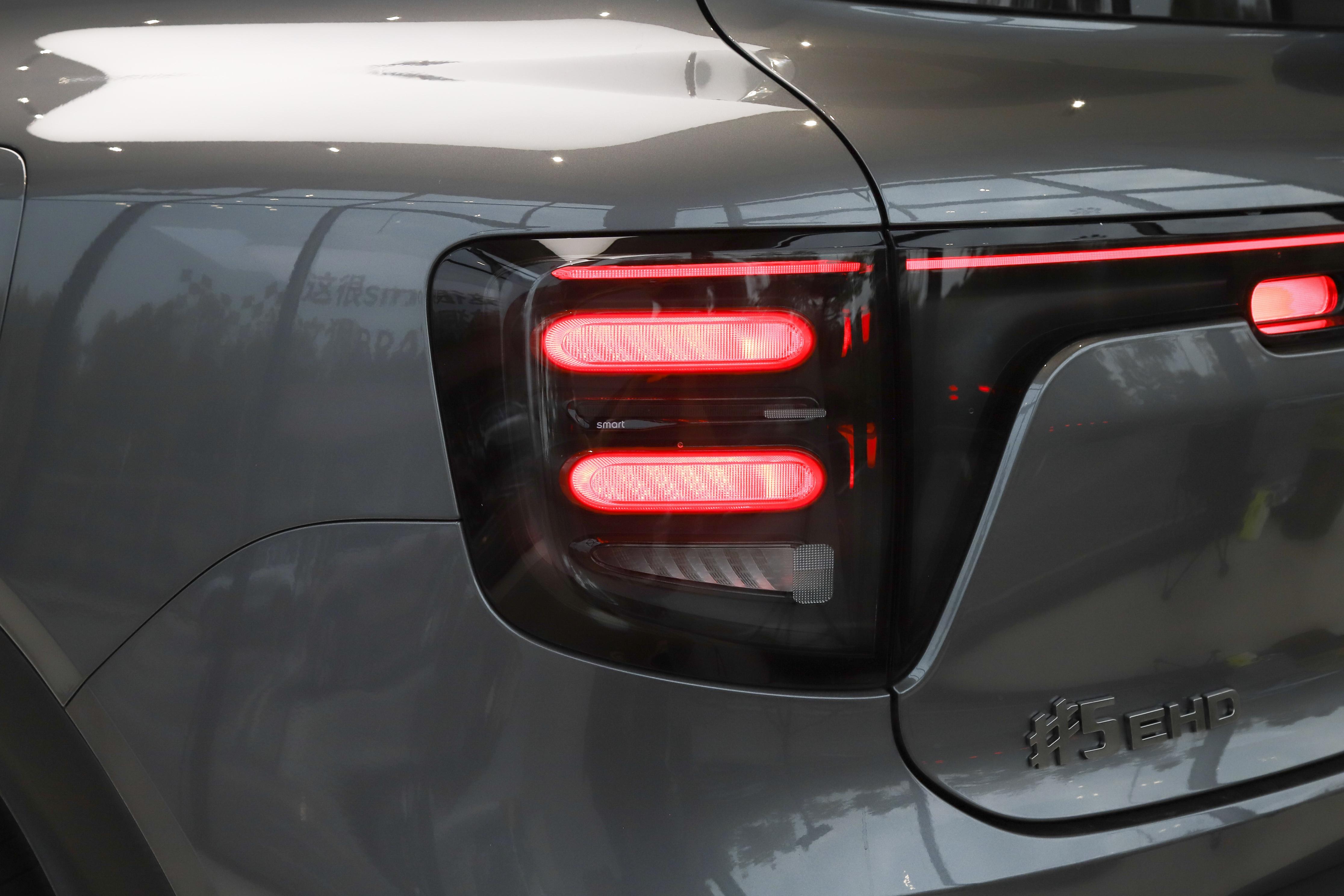 外觀設計:smart精靈#5 EHD的實車一亮相,便深深地吸引了我。這款車延續了梅塞德斯-奔馳全球定義的Boxy方盒設計,將硬朗線條與靈動細節結合。車身尺寸爲4705×1920×1710mm,2900mm的超長軸距,妥妥的一款中型SUV身段,氣場十足又具備smart標識性的精緻感。我們試駕的蒼巖灰車身質感出衆,在陽光的照射下呈現出低調奢華的光澤,簡約流暢的線條貫穿整車,視覺上格外協調。