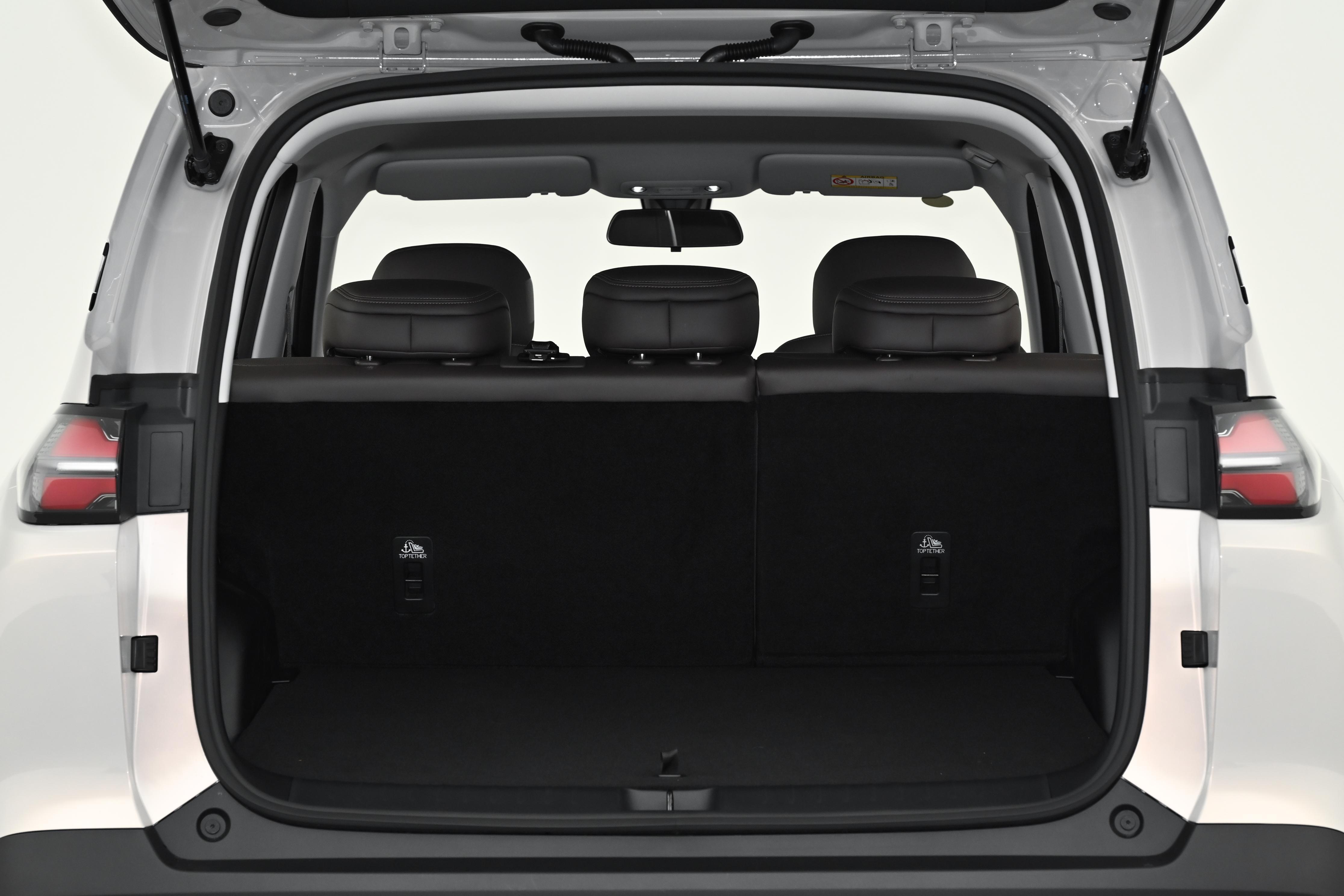 儲物空間設計貼閤家用場景,後備箱採用雙層佈局,常規容積爲763L,隱藏儲物空間184L,可分類存放魚竿、露營工具、生鮮食材等物品;後排座椅放倒後,容積可以拓展至1945L,形成純平空間,可以容納山地車、摺疊桌椅、帳篷等大型裝備,臨時休憩可以充當移動牀鋪。車內遍佈25處人性化儲物格,門板槽、中控儲物盒、扶手箱、杯架等設計,可以妥善收納手機、鑰匙、紙巾、水瓶等隨身物品,拿取便捷,把車內歸置得整整齊齊。