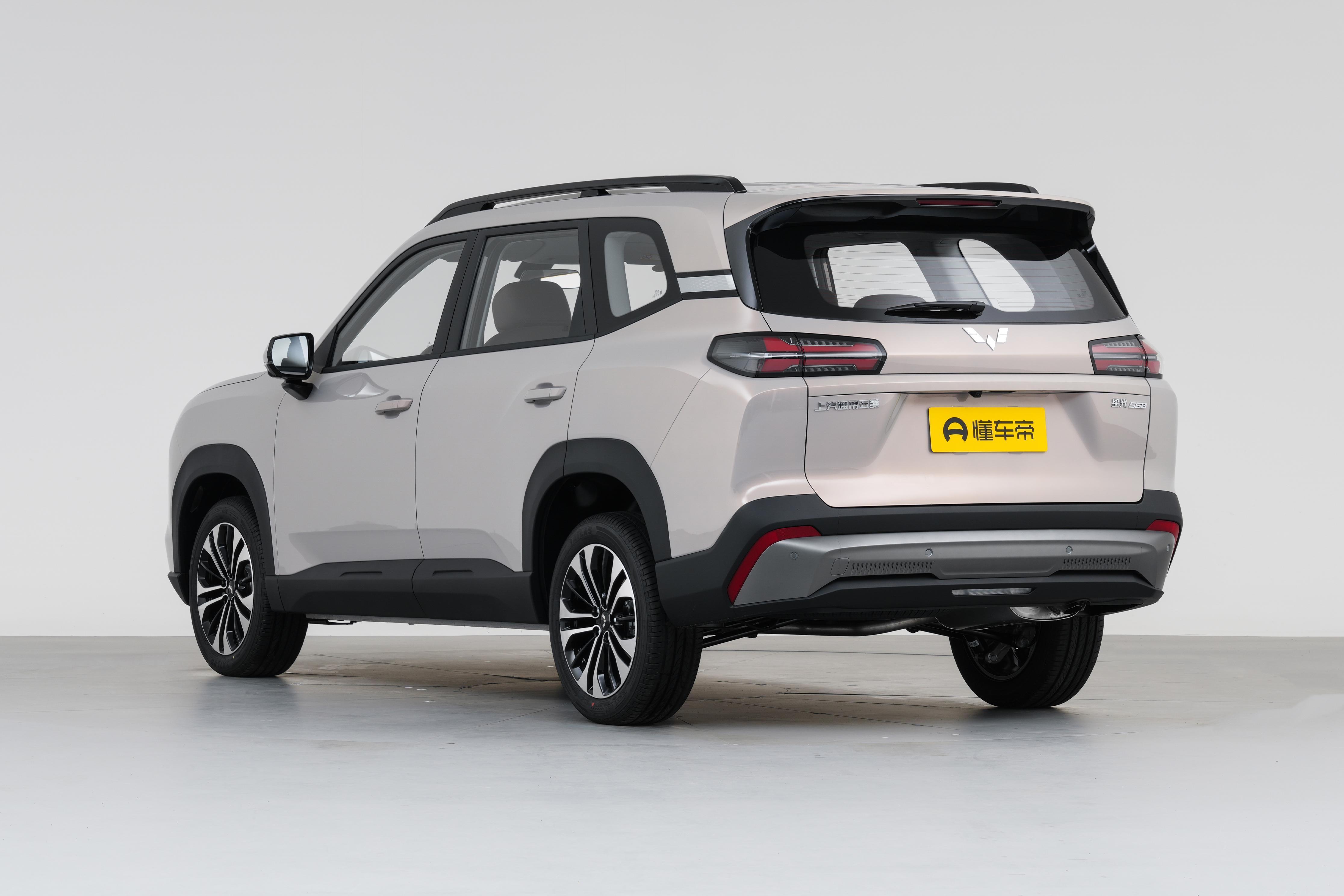 外觀設計:五菱星光560採用全新家族設計語言,整體看上去方正硬朗,與同價位車型常見的圓潤風格相比,不僅氣場硬派,而且辨識度高。車身尺寸爲4745mm×1850mm×1755mm,軸距長達2810mm,車身比例舒展大氣,視覺上遠超緊湊型SUV 的常規水準。前臉採用寬大燻黑中網與一體式大燈組設計,從視覺上拉寬了橫向辨識寬度,搭配硬朗的引擎蓋線條,盡顯紮實穩重;車身平直線條貫穿首尾,搭配18英寸輪轂,不僅提升了戶外實用性,還進一步強化了硬派風格;車尾豎向尾燈組佈局簡潔,夜間點亮後辨識度拉滿,爲日常行車增添安全保障。