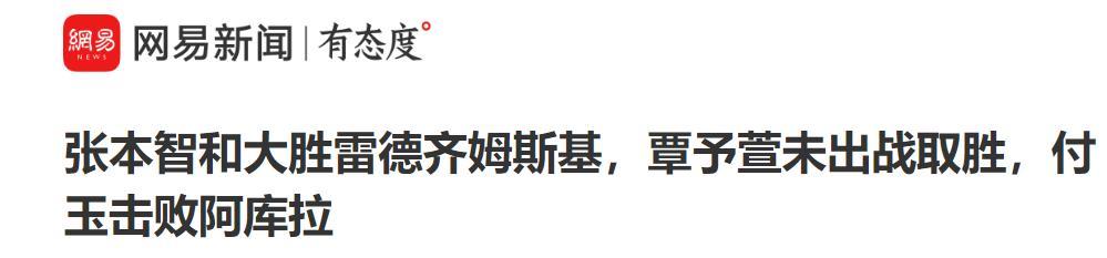 網易新聞——張本智和大勝雷德齊姆斯基,覃予萱未出戰取勝,付玉擊敗阿庫拉