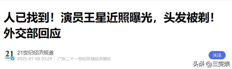 21世紀經濟報道——人已找到!演員王星近照曝光,頭髮被剃!外交部回應