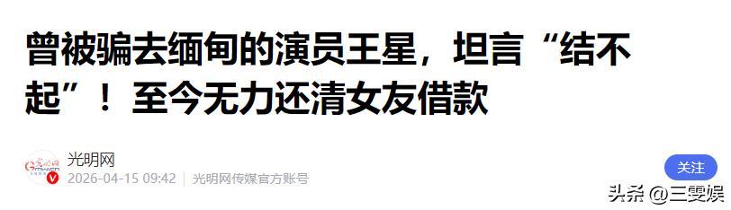 光明網——曾被騙去緬甸的演員王星,坦言“結不起”!至今無力還清女友借款