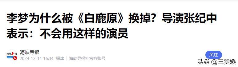 海峽導報——李夢爲什麼被《白鹿原》換掉?導演張紀中表示:不會用這樣的演員