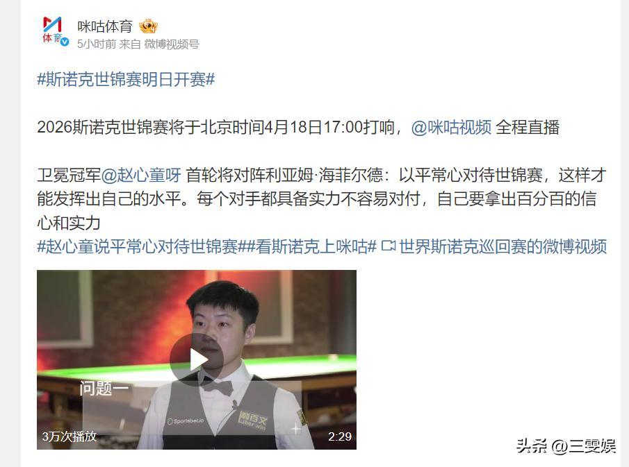 咪咕體育——#斯諾克世錦賽明日開賽#