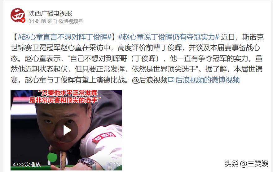 陝西廣播電視報——【#趙心童直言不想對陣丁俊暉#】