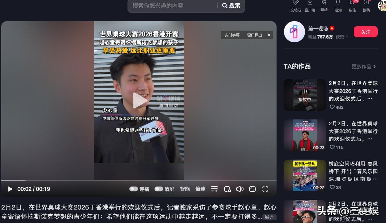 第一現場——2月2日,在世界桌球大賽2026於香港舉行的歡迎儀式後,記者獨家採訪了參賽球手趙心童。