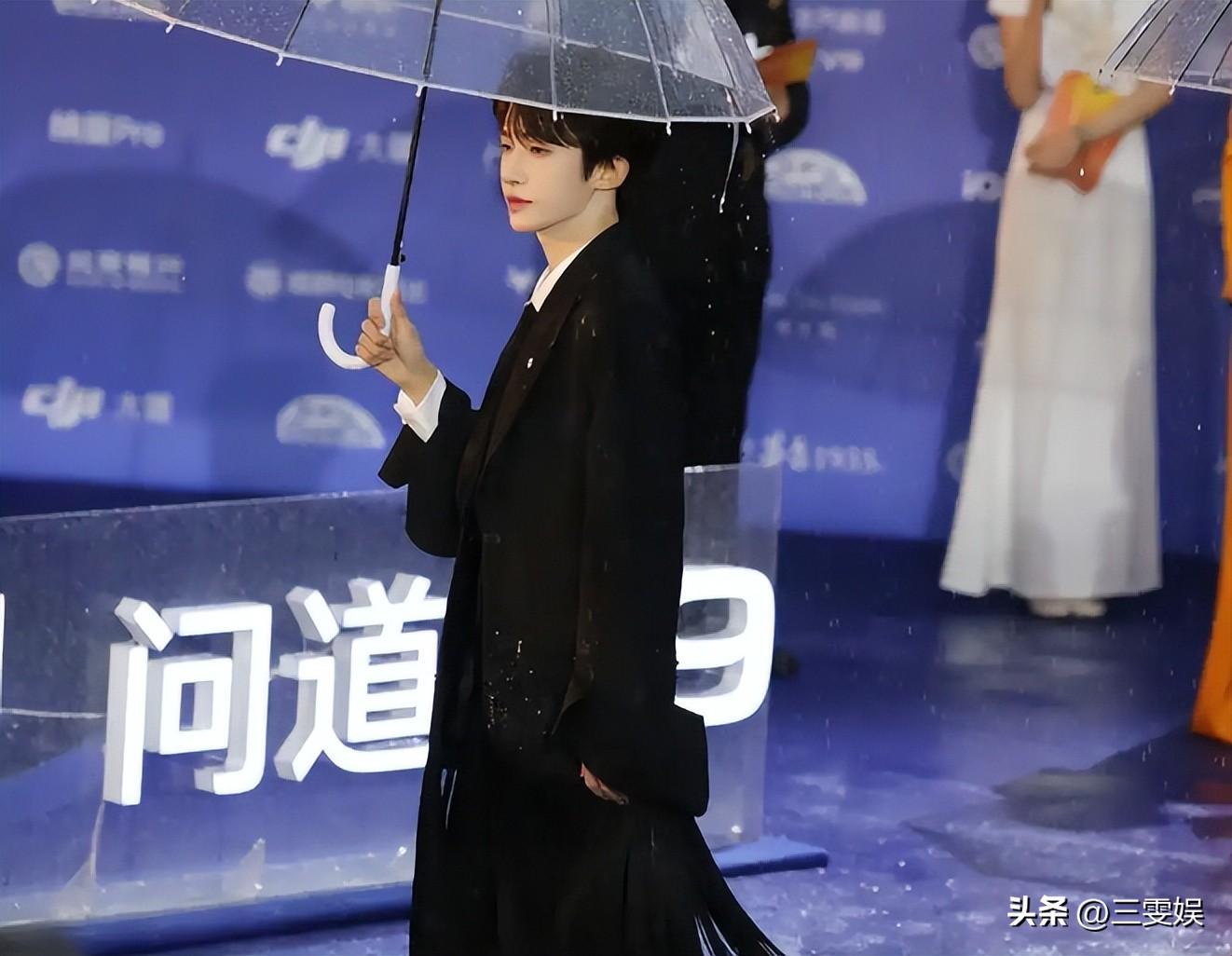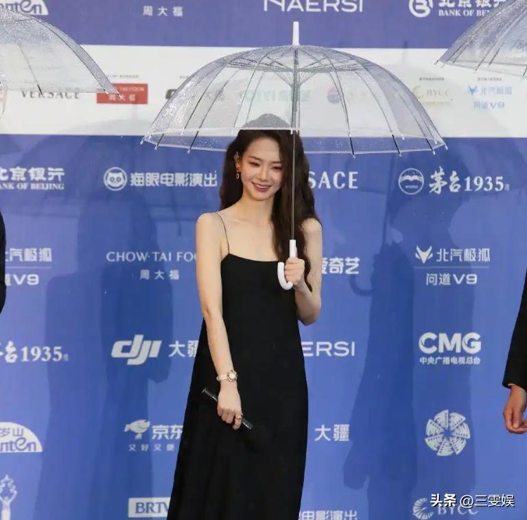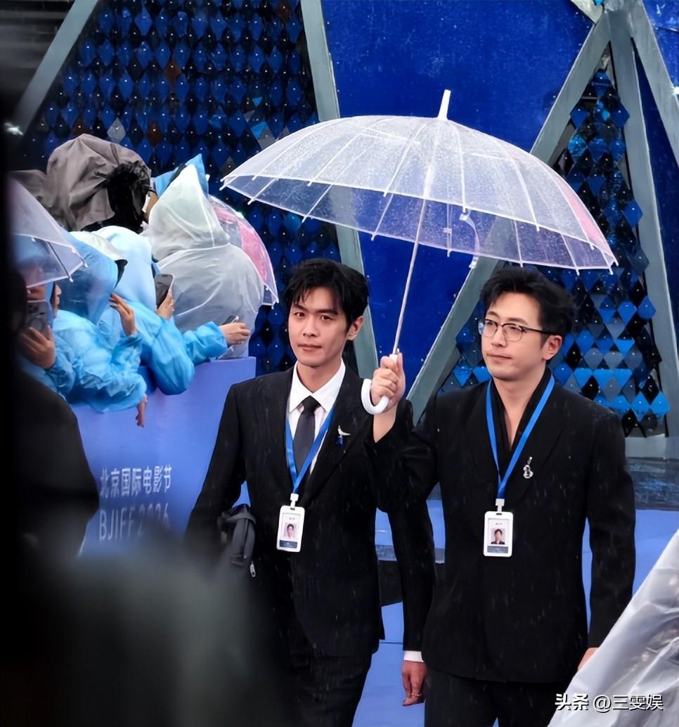 明星們一個個撐着傘,小心翼翼地邁步,生怕踩滑了或是濺起水花。