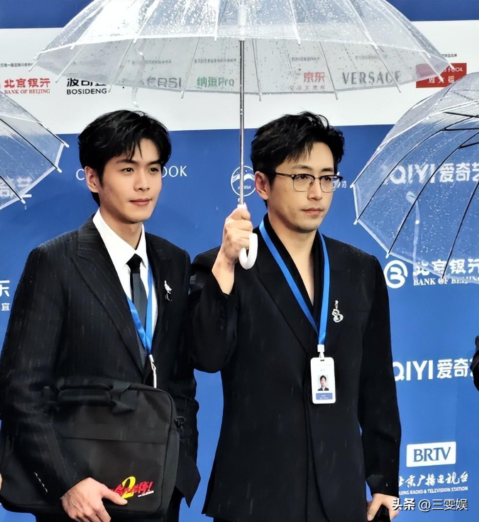 於適撐着傘跟着《四渡》劇組來了,這是他第三次來北影節。