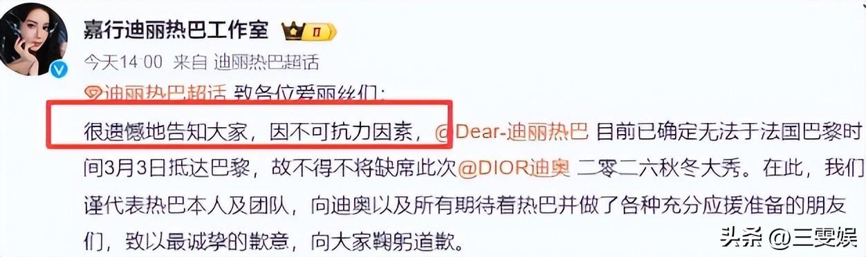 極目新聞——被滯留迪拜機場無法抵達巴黎時裝週?演員迪麗熱巴工作室發文確定缺席同時報平安