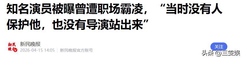 新民晚報——知名演員被曝曾遭職場霸凌,“當時沒有人保護他,也沒有導演站出來”