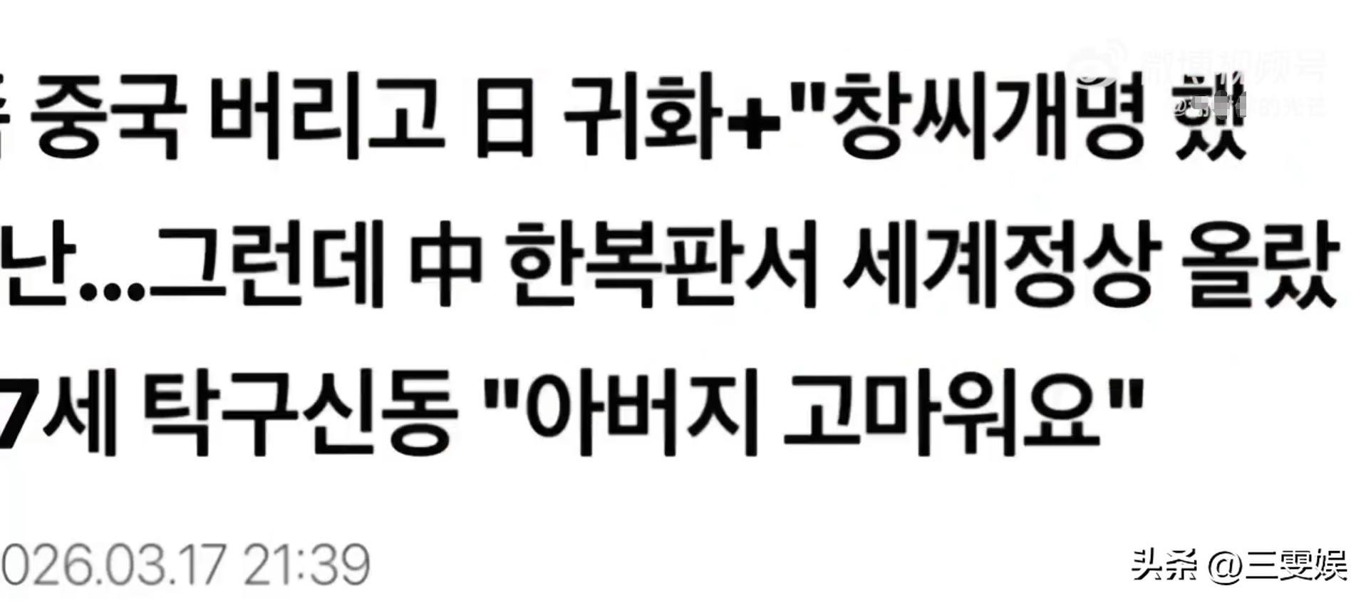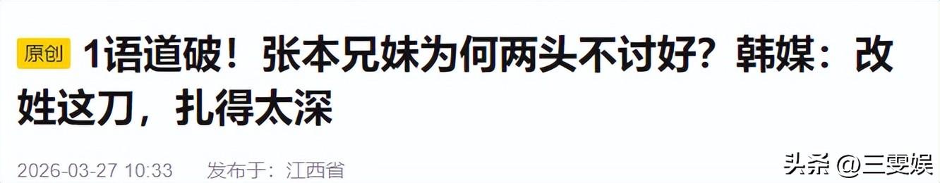 搜狐娛樂——1語道破!張本兄妹爲何兩頭不討好?韓媒:改姓這刀,扎得太深