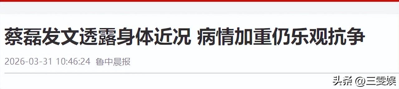 魯中晨報——蔡磊發文透露身體近況 病情加重仍樂觀抗爭