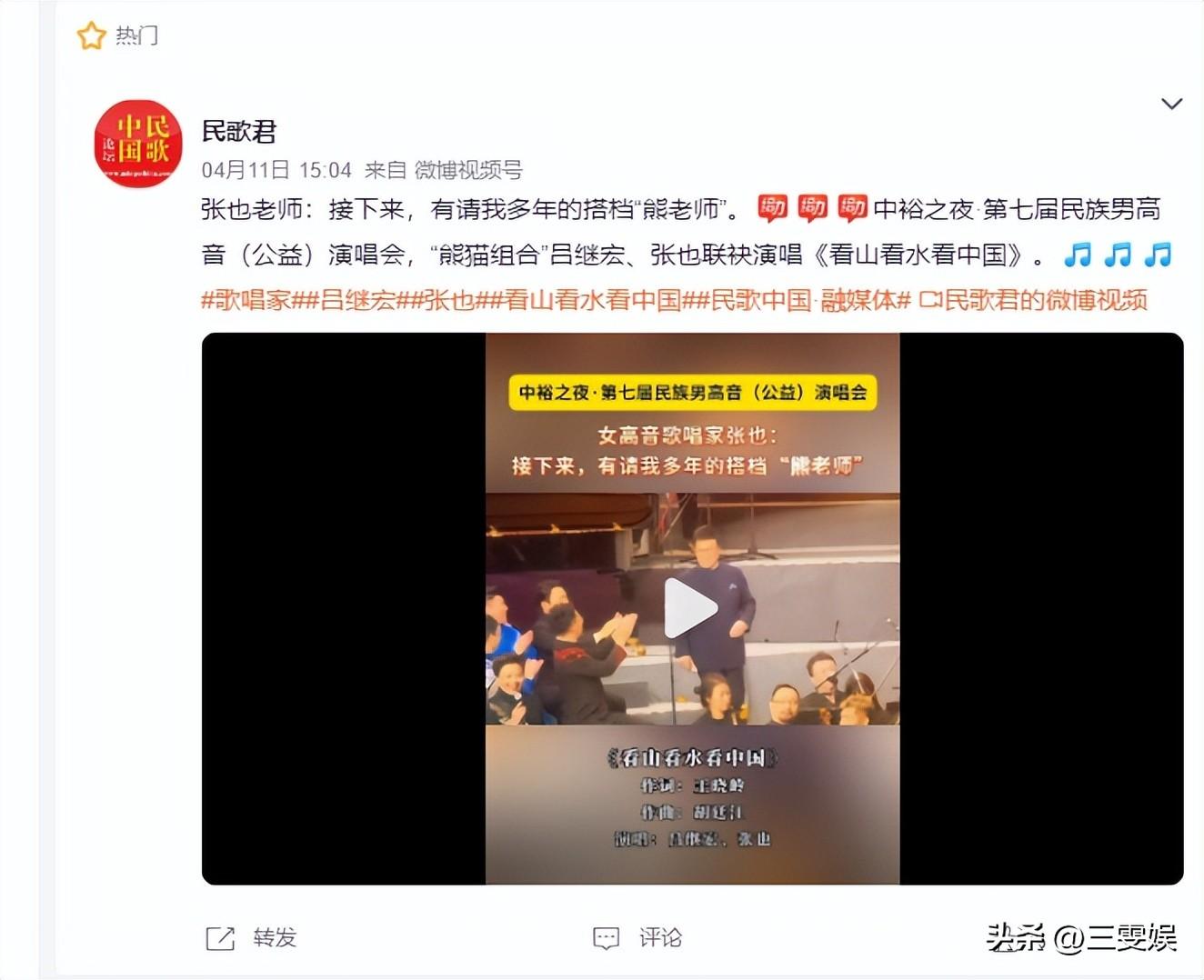 民歌君——張也老師:接下來,有請我多年的搭檔“熊老師”。