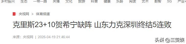 央視網——克里斯23+10賀希寧缺陣 山東力克深圳終結5連敗