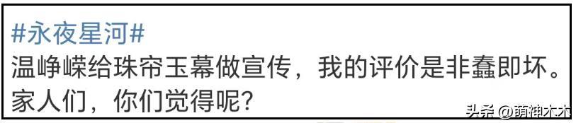 她的這個行爲,當時也引發很多討論。有虞書欣粉絲內涵:“我們只有劇粉了。”還有人直接批評溫崢嶸情商太低,拎不清,自己的劇還在播,卻給對家宣傳,有抱團的嫌疑。