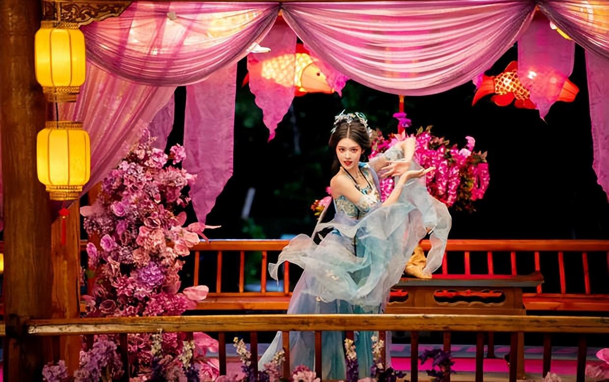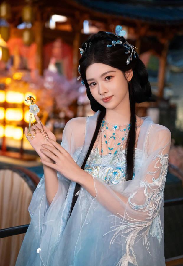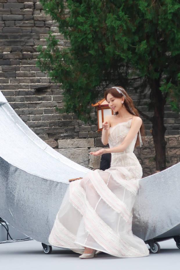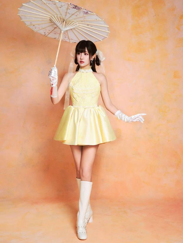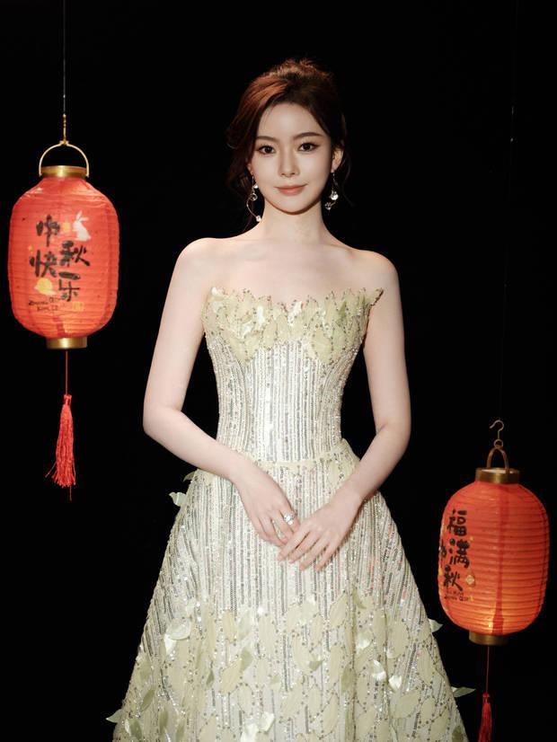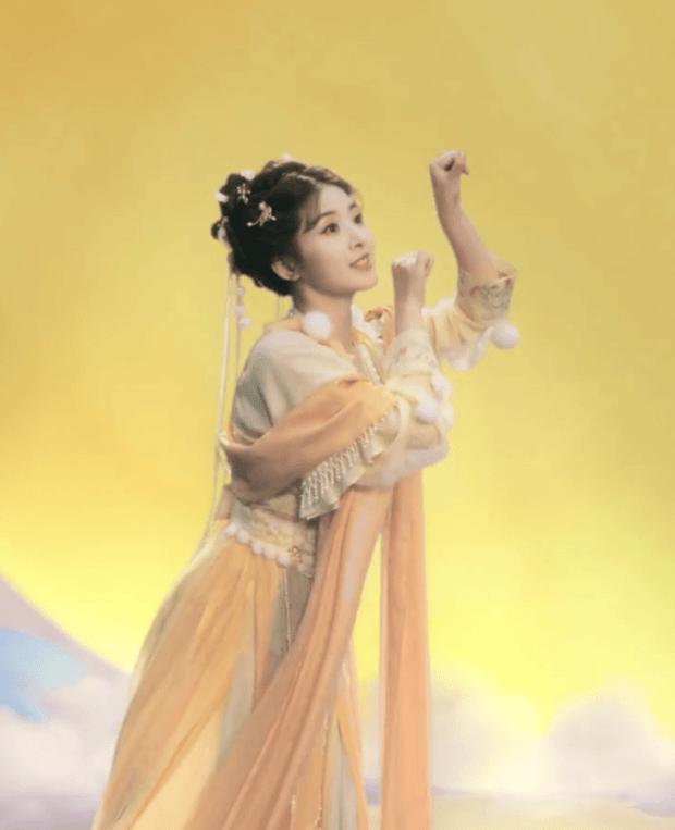 迪麗熱巴一襲鵝黃襦裙似月宮美人。