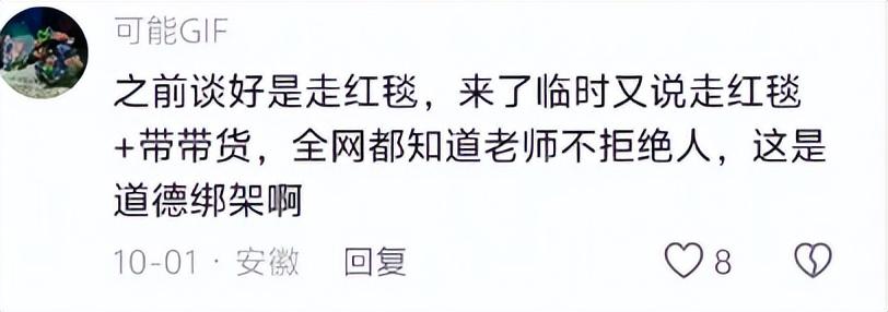 沈魏第二次被坑則是,前段時間參加了一場網紅九紅的活動。這場活動也是沈魏身邊人幫忙聯絡的。剛開始的時候,身邊人以及活動方都告訴沈魏就是到地方走一下紅毯,然後上臺講幾句話。沒想到的是,沈魏去了之後,不僅走了紅毯,還被迫站在臺上幫忙帶貨,能看出沈魏當天在臺上十分不情願,但他骨子裏善良不願拒絕人。