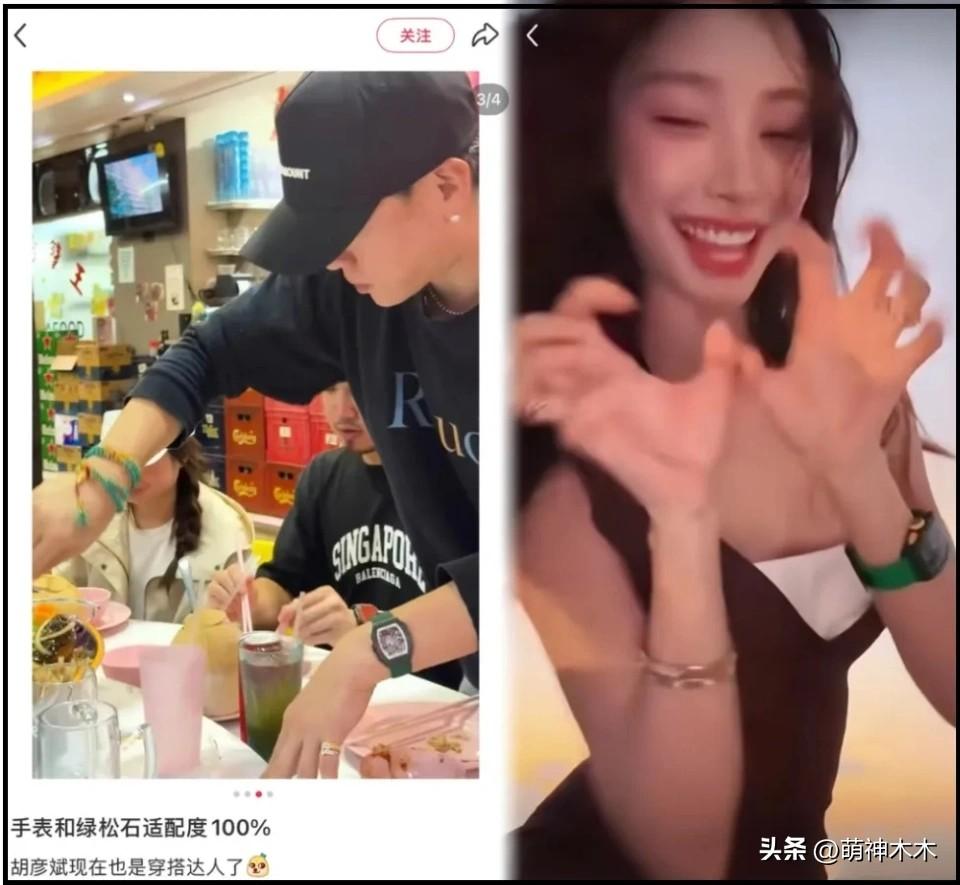 比如早就戴上了情侶表,同款表還出現在易夢玲馬爾代夫的視頻中,胡彥斌還一起去看了話劇演出,被偶遇一直回頭看易夢玲有沒有跟上。