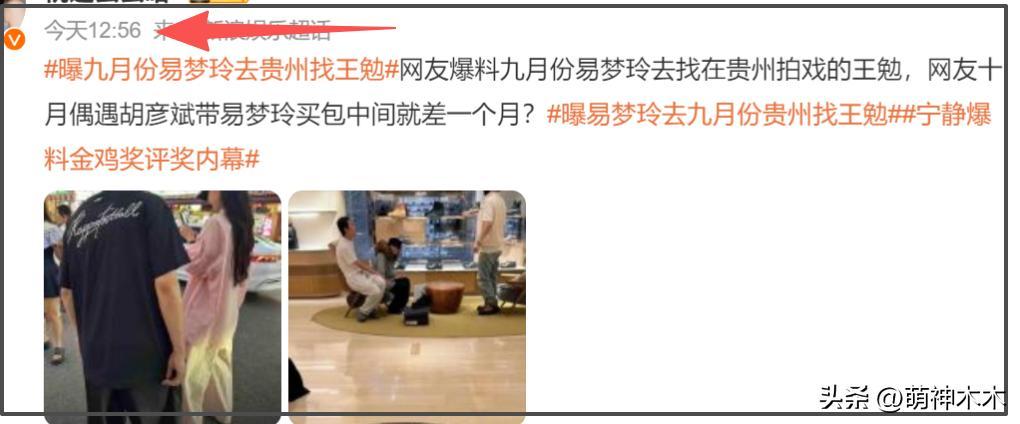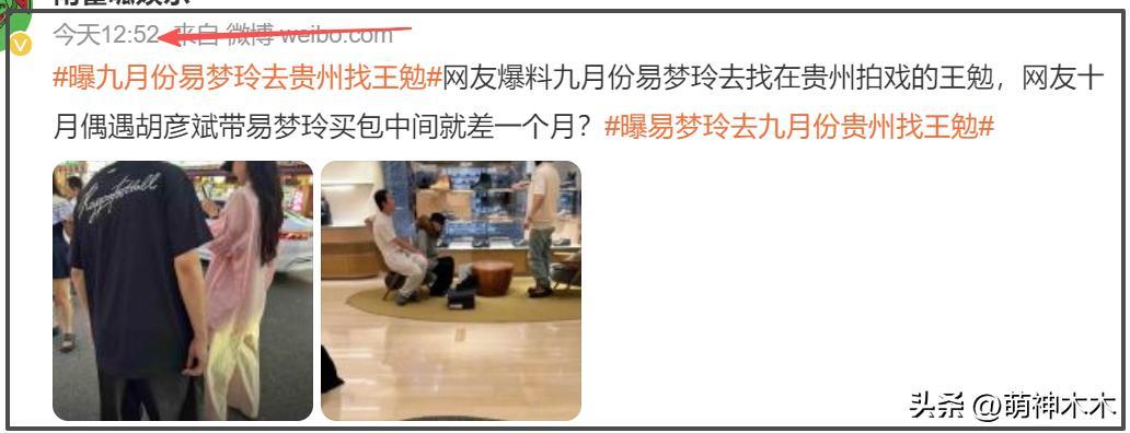 這時,有網友出面爆料了,稱9月份王勉在貴州拍戲,易夢玲還去找過他,並曬出了照片。緊接着,10月有網友偶遇胡彥斌帶易夢玲逛街買包。