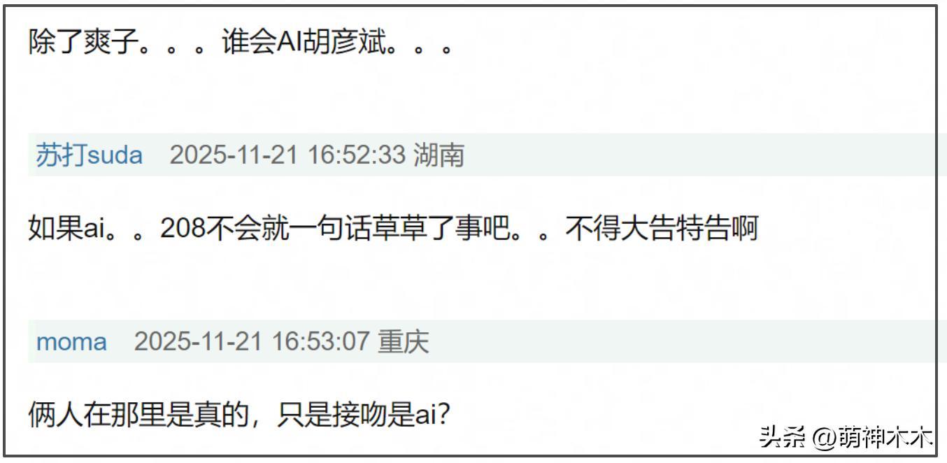 對此,網友紛紛吐槽易夢玲甩鍋AI,兩人的帽子和衣服都對上了,視頻裏還有路人路過,他們的身形也沒有變形。