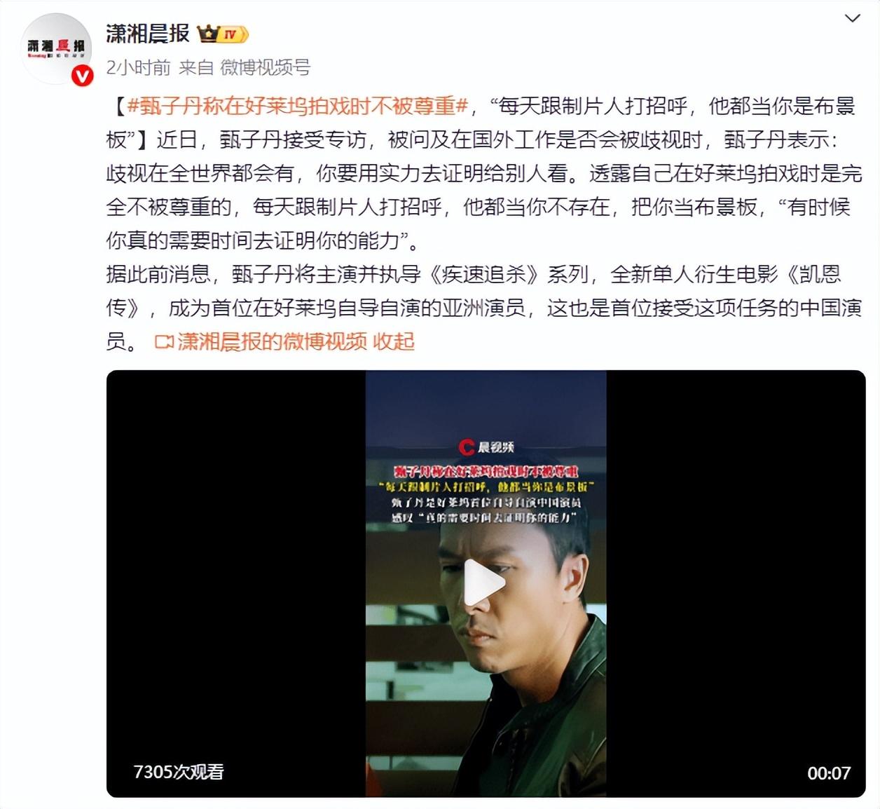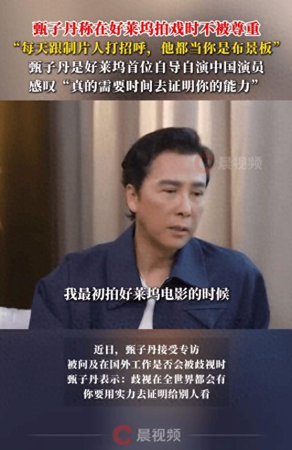 近日,甄子丹接受專訪,被問及在國外工作是否會被歧視時,甄子丹表示:“歧視在全世界都會有,你要用實力去證明給別人看。”他透露自己在好萊塢拍戲時是完全不被尊重的,“每天跟製片人打招呼,他都當你不存在,把你當佈景板”,“有時候你真的需要時間去證明你的能力”。