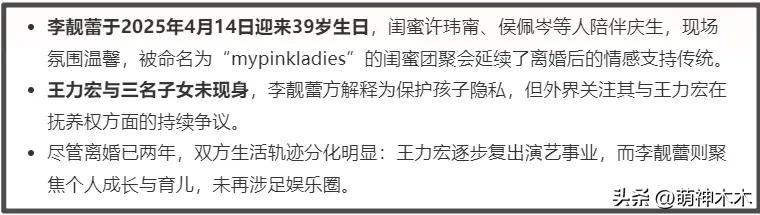 ——當時還有網友好奇,爲什麼李靚蕾過生日的時候沒看到她和王力宏的三個孩子,猜測是不是撫養權有了變動。