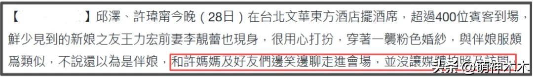 說起來,邱澤和許瑋甯還帶了他們的孩子參加婚禮,不知道李靚蕾爲什麼沒帶三個孩子一起來,還拒絕了媒體訪問。