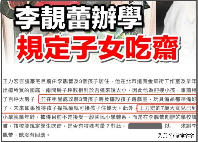 網友的記性還是挺好的,很快想起來王力宏曾經控訴過李靚蕾不讓孩子上學,臺媒爆料過李靚蕾創辦了一家學校,讓三個孩子在自家學校讀書,學校還規定孩子需要喫齋。
