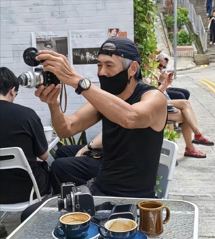 就在官方消息放出之時,周潤發在香港街頭被偶遇,他戴着黑色帽子衣着隨意,時而擺弄相機,時而品嚐咖啡,晚年生活好不愜意。