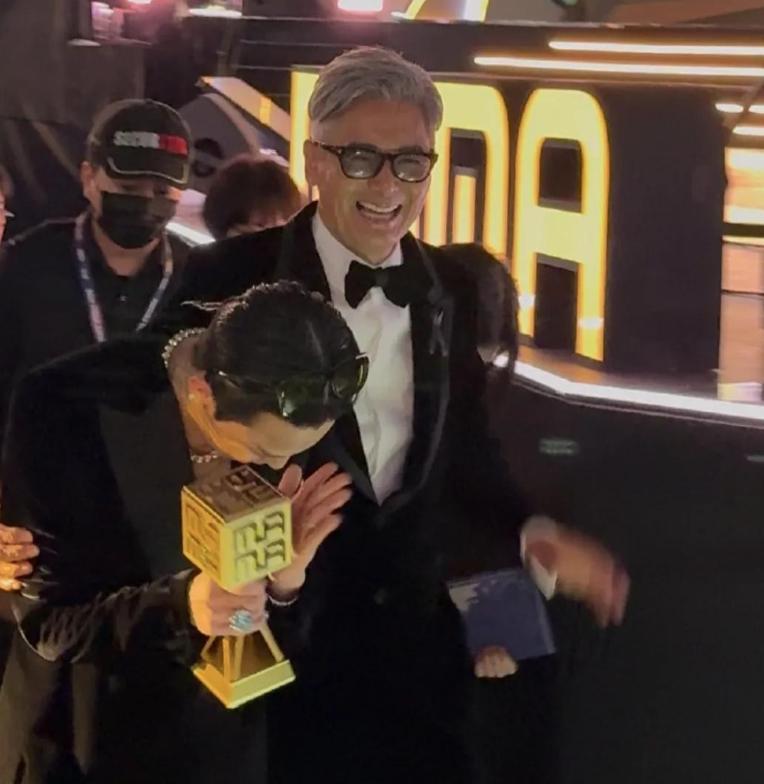 這一晚,周潤發爲權志龍頒發了“年度藝人”獎,作爲前輩,他在臺上表現出非常欣慰的神情,像是身邊看着長大的孩子有了出息的樣子。