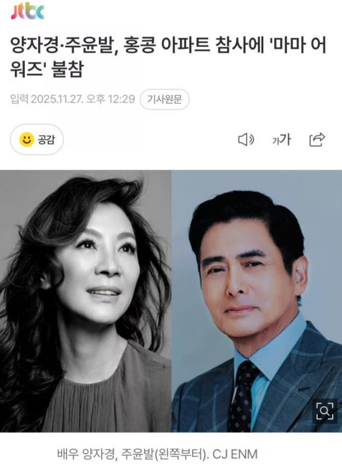 更尷尬的是本就定好做爲嘉賓登臺的楊紫瓊和周潤發,若兩人在火災之後登臺與韓國明星頒獎、同慶頗爲不妥。