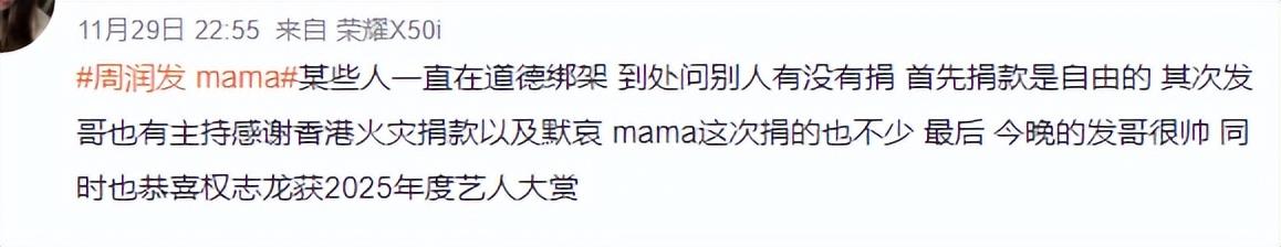 持這個觀點的大有人在,他們認爲周潤發之所以履約到場,實際上爲了感謝MAMA盛典的付出。