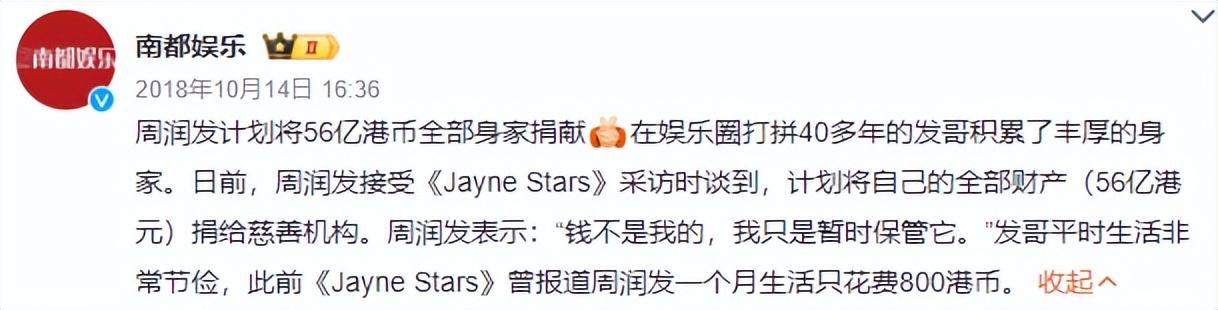 更是在2018年時宣佈將把全部身家,近56億港幣全部捐出。