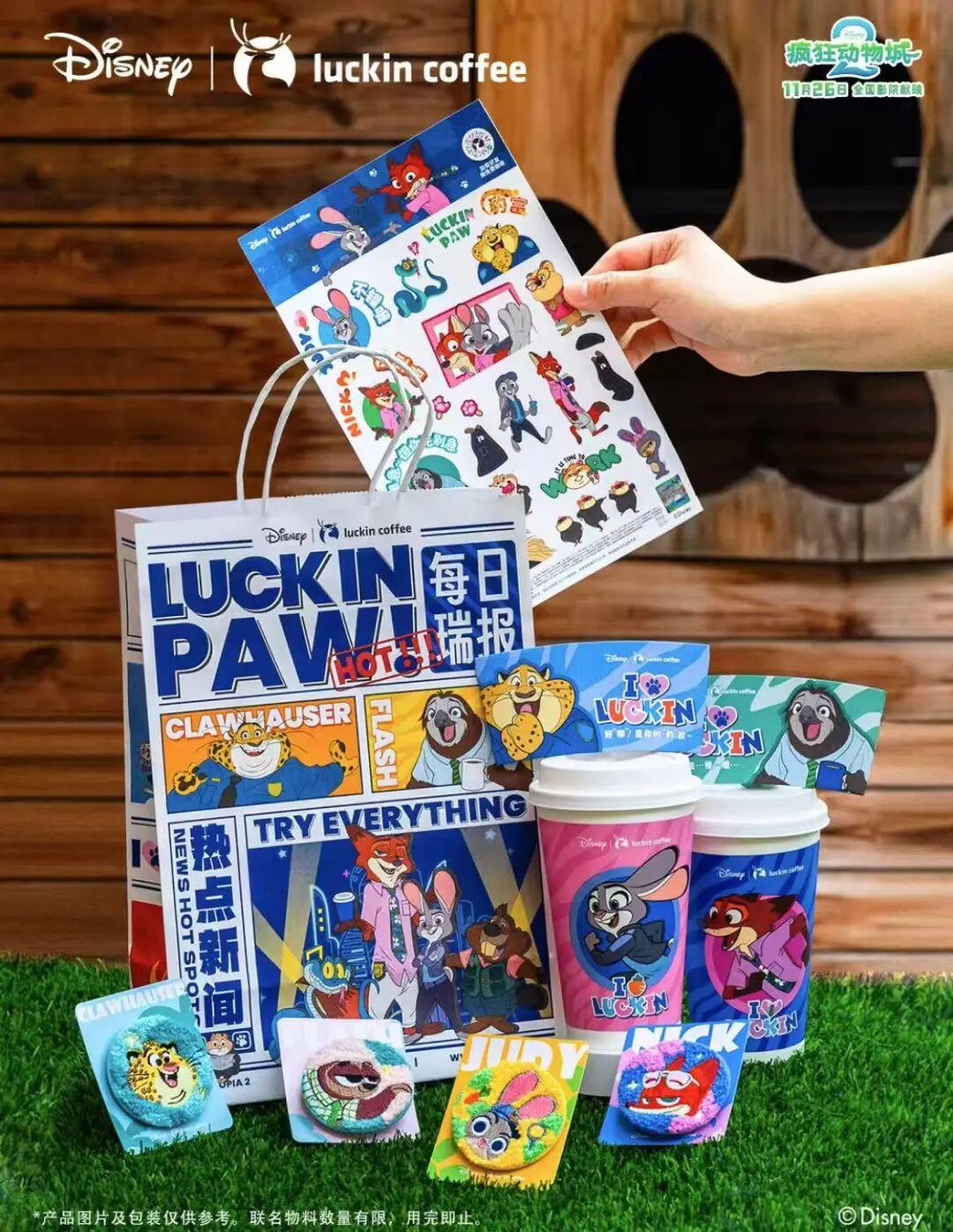 傳統動畫電影的聯名,大多盯着二次元受衆或是電影垂直的羣體,多集中在潮玩、手辦這類垂直產品上。《瘋狂動物城》不一樣,從“牛馬”每天一杯的瑞幸、星巴克,到每個商場必逛的優衣庫、H&M、名創優品,再到更高消費的金飾品牌……IP聯名的這些品牌覆蓋了目前全產業鏈、全年齡段的消費領域。