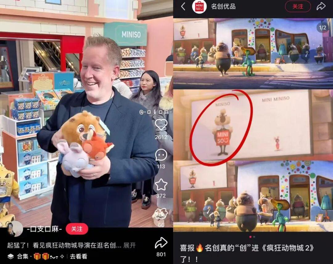 潮玩周邊是迪士尼的傳統強項,但這次也兼顧了更大衆的消費人羣和核心粉絲。《瘋狂動物城》聯名了名創優品、52TOYS等一批頭部潮玩品牌。名創優品不僅出了手辦、文具,以及各種飾品掛件等,還成了首個植入電影的中國品牌,電影裏的“MINISO”門店廣告牌成了粉絲必找的彩蛋。