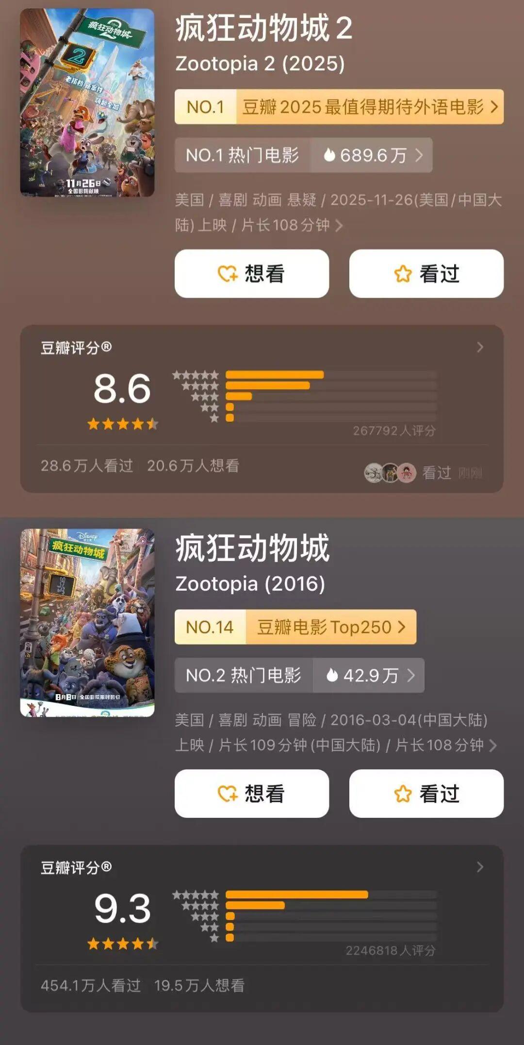 9年前的《瘋狂動物城》可以說是迪士尼真正做到“全民觀影”的現象級IP:內地總票房達到15.38億,僅次於北美成爲全球第二大票倉,豆瓣223萬人打出9.3分。