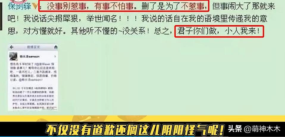 保劍鋒當年一邊手撕印小天,一邊不忘推銷自己要資源,事後翻車也堅決不認錯,和他對待前妻黃慧頤的態度一模一樣。