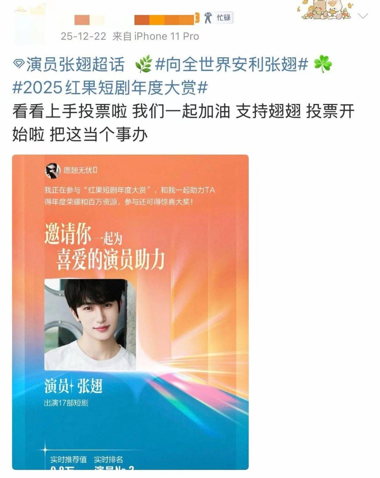 就在近期,紅果短劇開放《2025紅果短劇年度大賞》投票,短劇演員的粉絲們也需要“熬夜做數據”了,是行業流量化的一個典型事件。