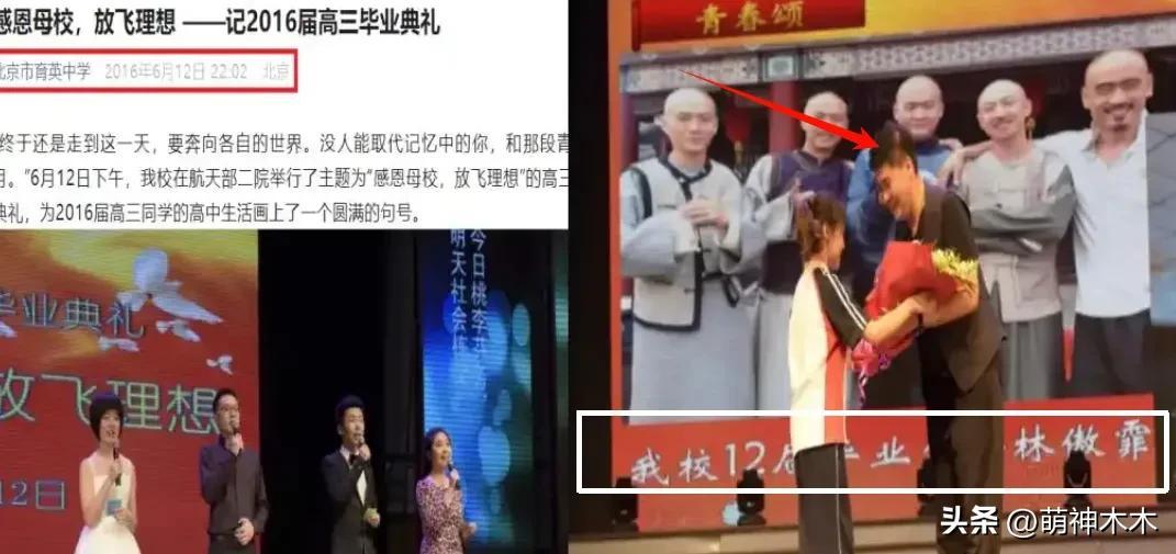 基本可以確定林傲霏就是2012年高中畢業後,考入中戲2012級戲劇表演本科一班的。林傲霏還曾以2012屆畢業生身份回高中母校參加慶典。