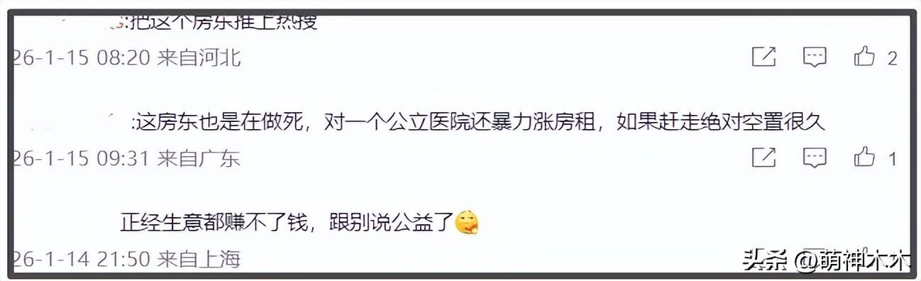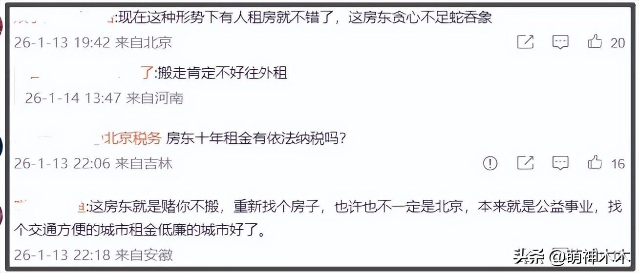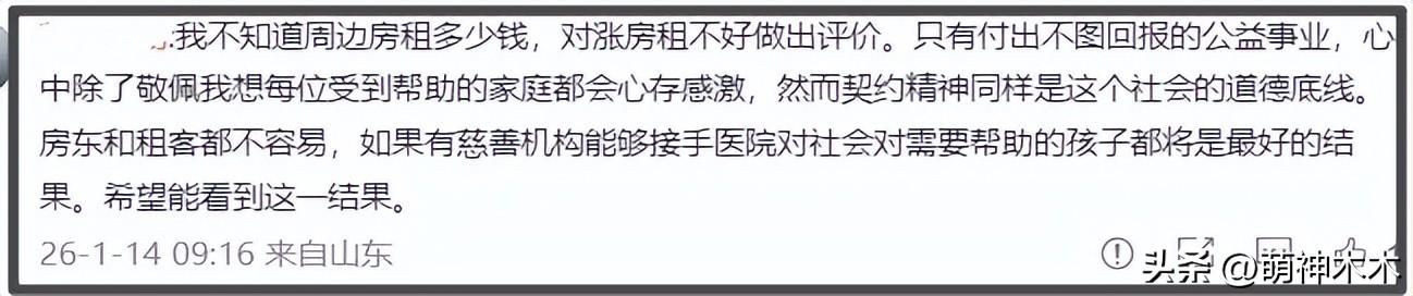 在大型愛心團建之外,也還是有零星的負面聲音,不少網友認爲他在道德綁架房東,利用公益博得同情心。