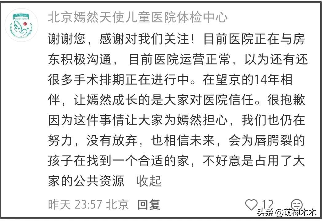 與此同時,嫣然天使醫院官方賬號也在每個聲援支持他們的評論區留言感謝,還表示醫院手術排期正常運行,會給所有病患找到一個家。