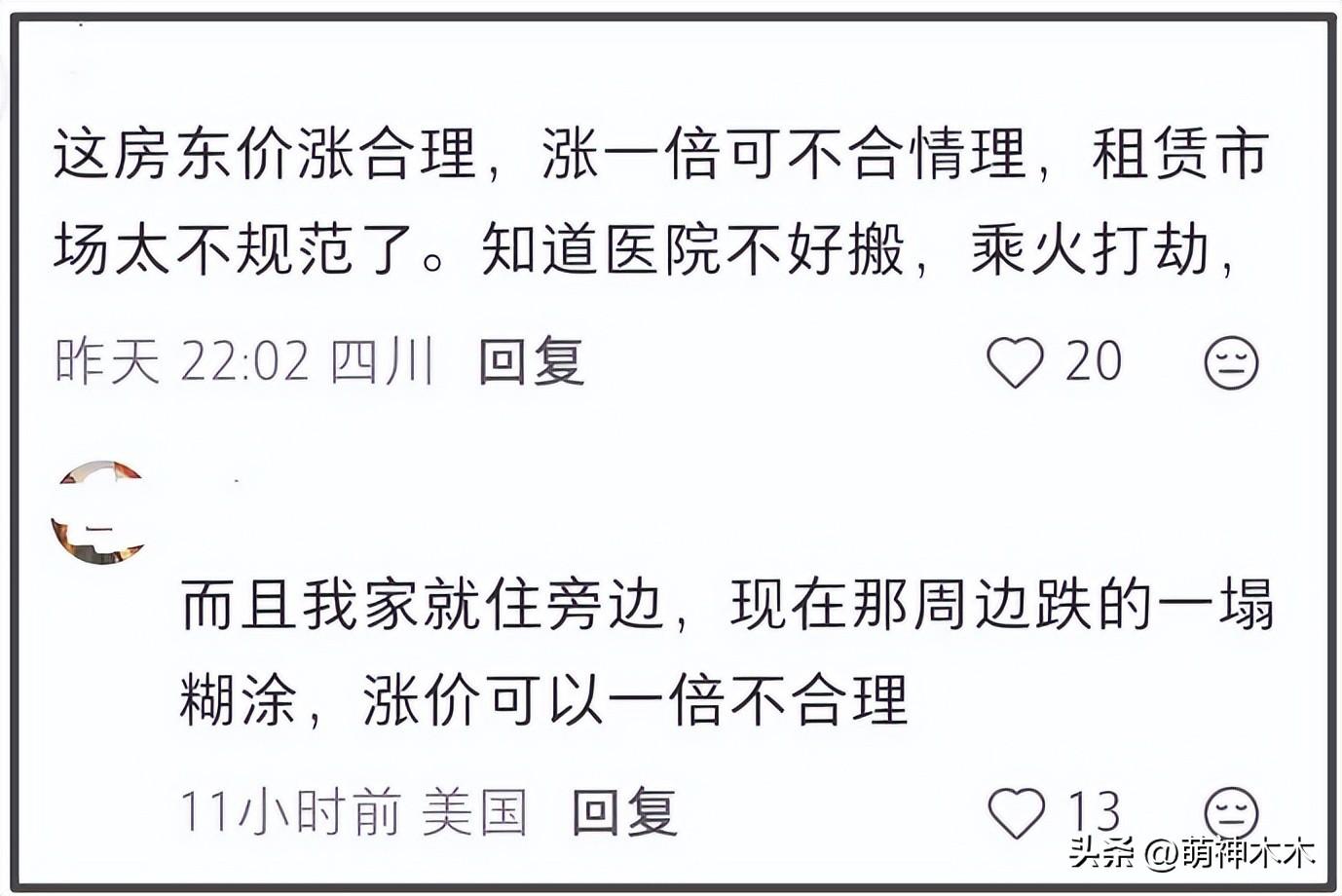 瞭解完李亞鵬整個欠租風波後,有很多網友認爲房東漲租的行爲不厚道,於是試圖用輿論倒逼房東減租。許多網友稱市場經濟漲價合理,但是漲一倍就是趁火打劫,畢竟醫院對面的房租3塊錢,李亞鵬的醫院7塊錢,一點都不合理。所以有網友建議把房東推上熱搜,還希望相關部門對其查稅。