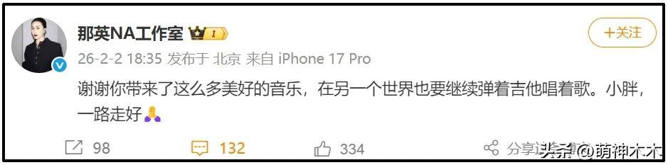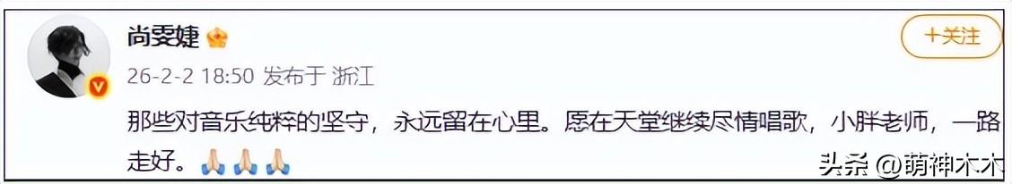 吉克雋逸則用袁惟仁寫的詞寫“開了笑了散了”送別,下半句出自歌曲《生活在別處》,祝袁惟仁去向更自由的地方了。尚雯婕祝小胖老師一路走好,還表示那些純粹的音樂都將永遠記在心中,願他在天堂盡情歌唱。