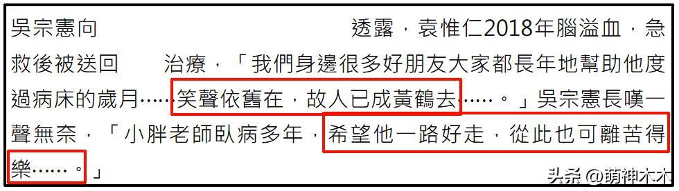 張宇轉發悼文寫道:“我們親愛的小胖今天離開我們了.......”,陳子鴻也祝:“小胖老師一路走好。”在袁惟仁腦溢血住院後,張宇、陳子鴻等好友對他進行了長期醫療資助,關係深厚。